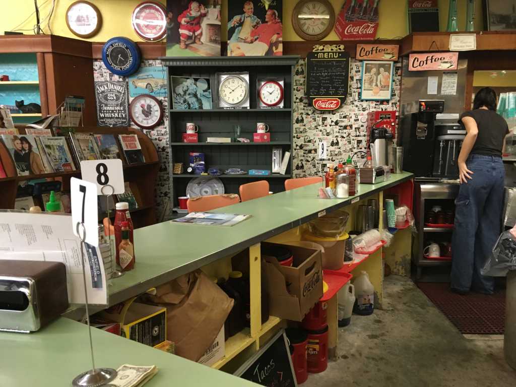 We ended up finding a cache at a local drugstore famous for its old school lunch counter.  Of course, we stopped for a milkshake and a couple of ice cream floats.