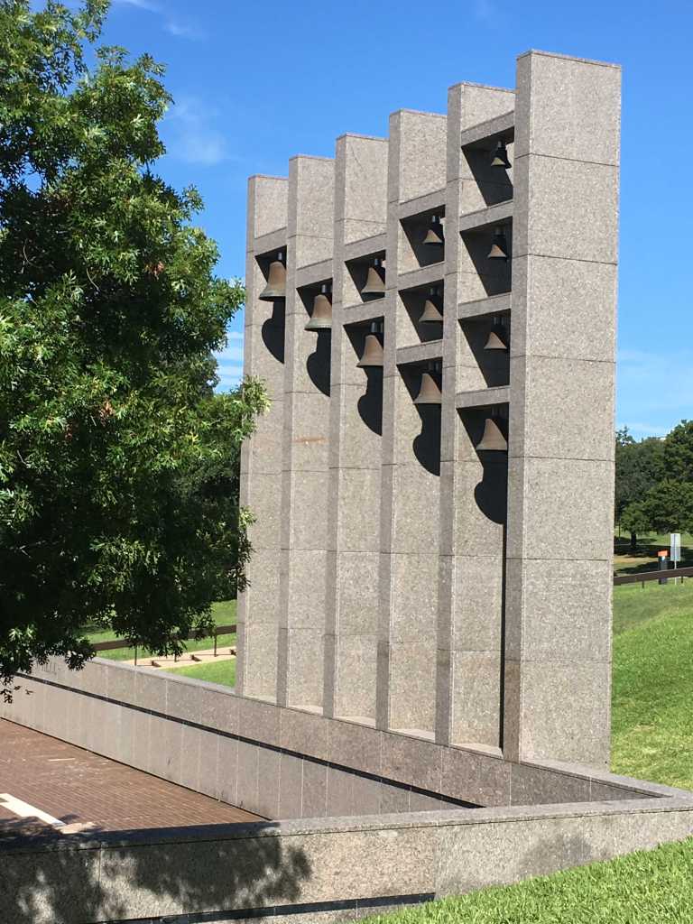 This carillon is made from the original bells in the tower. They were an anonymous donation by an alumnus who is now known. Eventually they were retired and placed here.