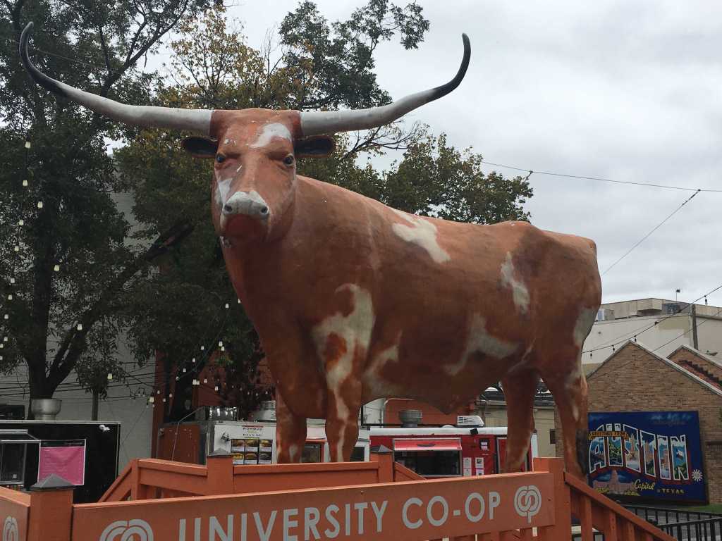 This, of course, is a longhorn. No history. Just some benches and a bunch of food carts.