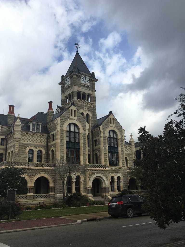 On the other hand, there are a great many more caches to be had here than back in Cuero. After picking up the aforementioned feed, we hit the courthouse and, as fate would have it, there was one on the courthouse square. A 5.0/1.0 no less. My caching buddy started looking for the cache while I took photos.