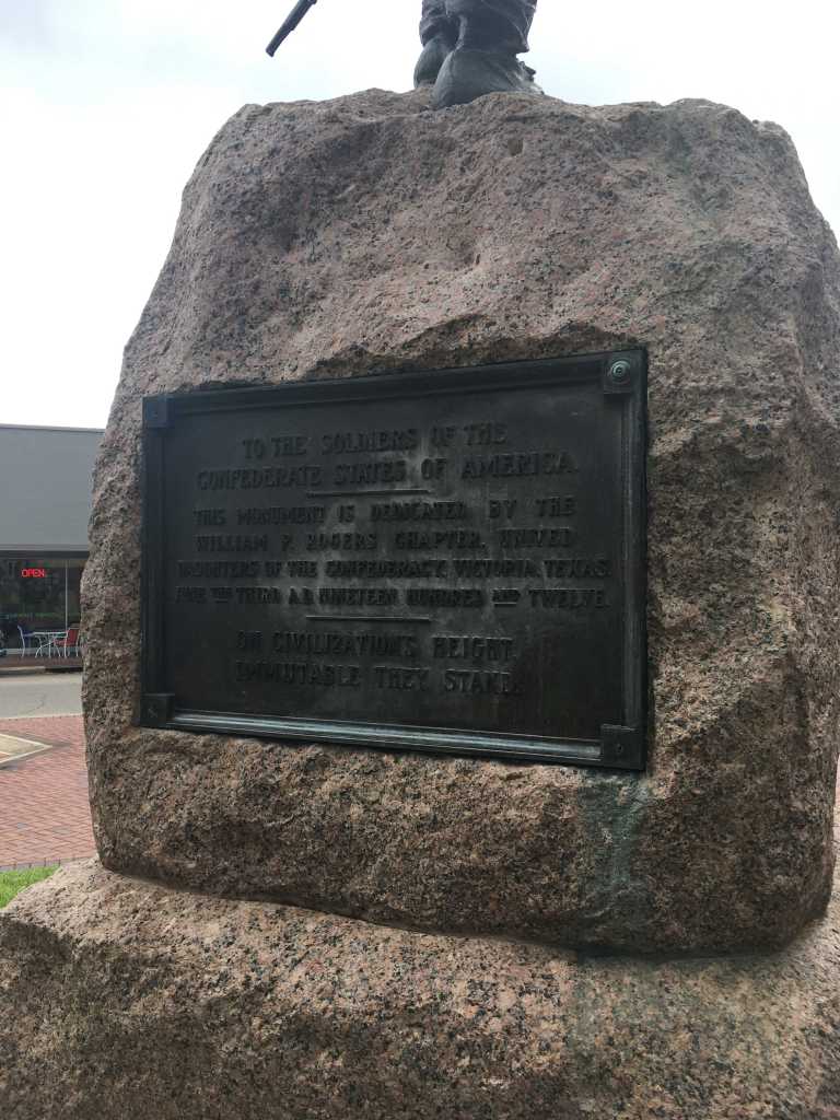 Of course, there are monuments around the square as there are at any courthouse. Victoria, of course, has its own. But one kinda snuck up on me.