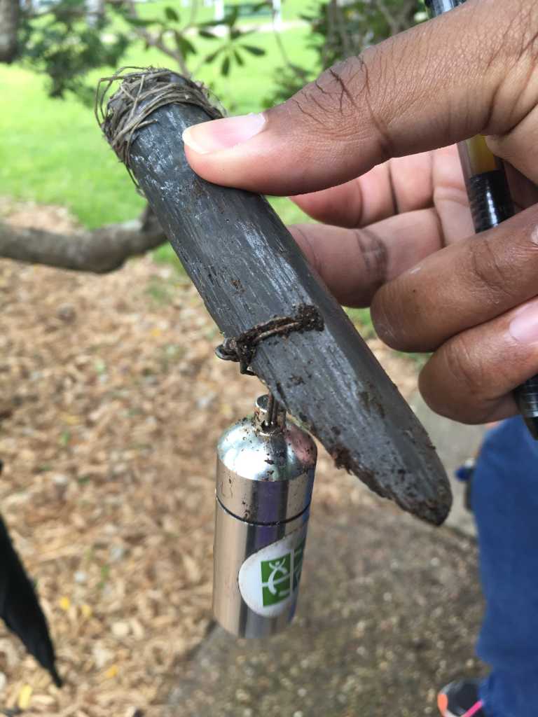 He wasn’t meant to stand vigil for me. No matter. I had a cache to look for. Turned out that she found it before me. She left it for me to look for and I spent about 20 minutes looking for it myself, but time was ticking and we had a schedule to keep so she showed it to me.