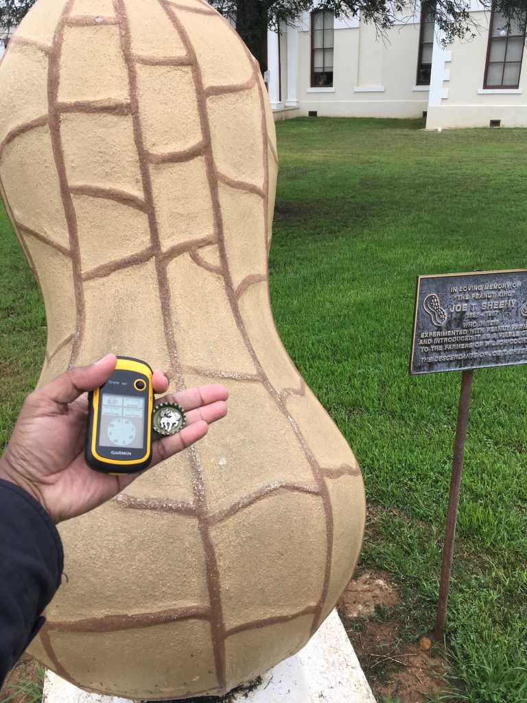 Seguin has a pecan. Floresville has a peanut. It’s devoted to the man who made peanut farming a thing in Wilson County. It is also, as fate would have it, ground zero for a virtual cache! It involved programming a waypoint into my GPS and going to a certain point where there is a certain thing with the info to claim the cache. The good news is that I just bought a real GPS about a week ago. The bad news is that I have not quite yet figured out…the more subtle applications of it (and by “subtle”, I really mean “any but the most basic”). That being said, the Boy Scouts and the Army were good for something. It was easy enough to get a good heading (though, I may want to start carrying an actual compass instead of using a virtual one) and estimate the distance. I sent him the information and a required photo of me and my GPS at The Peanut. I learned recently that guidelines prohibit having to take a photo of yourself, but meh…