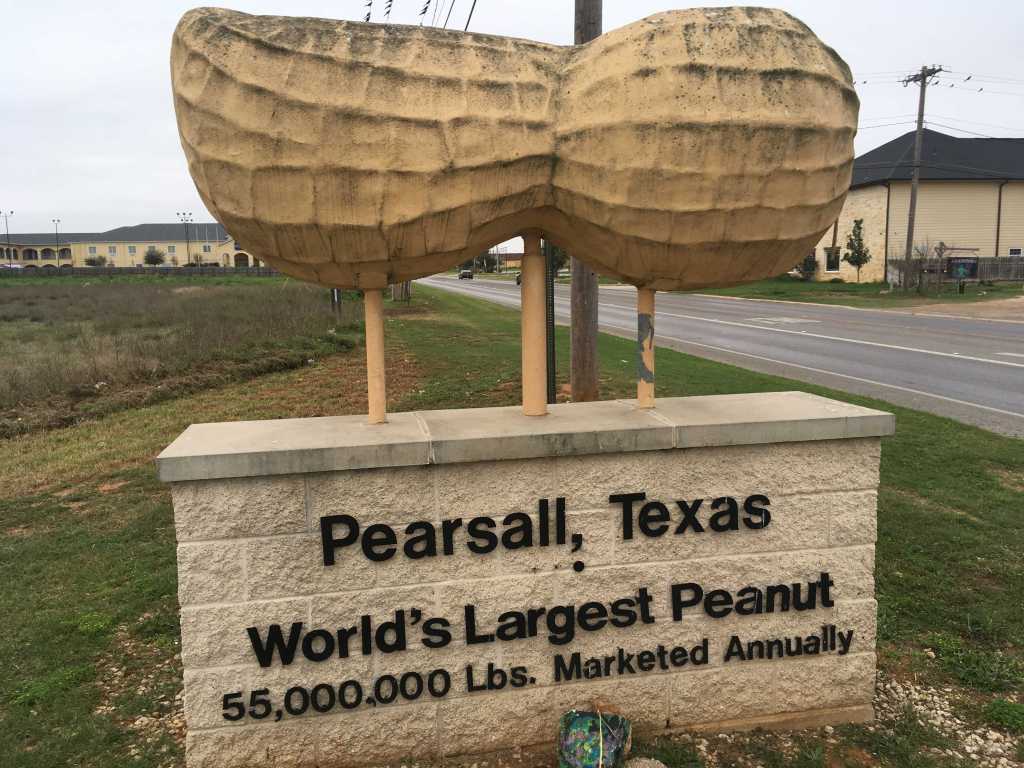They claim the world’s largest peanut so as you can imagine, this is a good place to put a cache… No, that’s not it in the front. That’s some kind of art stone thing so that’s cool. It was a key box back behind so, again, nothing particularly special, but that’s cool, too. We saw Pearsall and the World’s Largest Peanut. That’s enough justification right there. And with the hour growing late and the sky growing dark, I got back in the car for the last time today (other than a snack stop) and headed on up IH-35 for home.