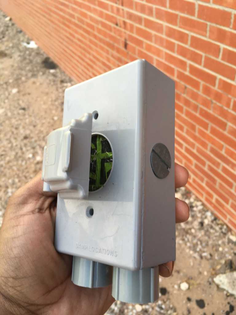 Now that’s a courthouse, a beautiful beast back in the bosom of Texas. But I feel a little bit guilty that I didn’t spend much time here. I ended up stopping for a bit for a phone call with my daughters, themselves on the way to northeast Texas to see their grandparents in a county I haven’t cached in yet (though give me time. That trip is already in the advanced planning stages). It also turned out that a cache was really, really close. Across the street was an old electronics store and on the back side I found…