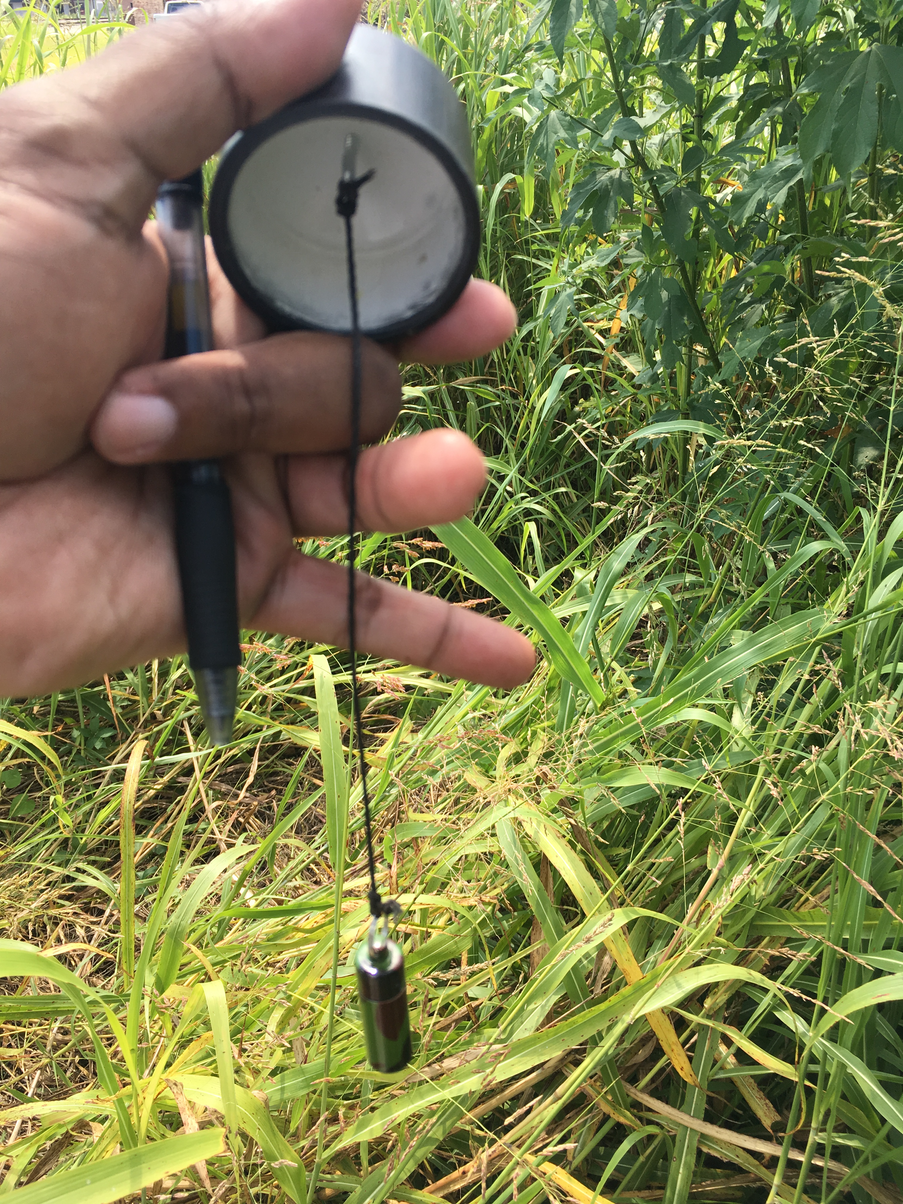 At first I thought it was hidden in the rocks in the waterfall fountain wall, which would have been totally worth a favorite, but alas no.  I finally figured out that it was in flagpole skirt, but I lifted it to find two strips of velcro and nothing else.  A few messages back and forth with the owner confirmed what I already knew: someone had walked off with the cache.  Bunch of savages in this town!  So went off again to a nearby old train station.  I started tromping around in the field next to it, poking in the tall grass, not finding anything of use until…