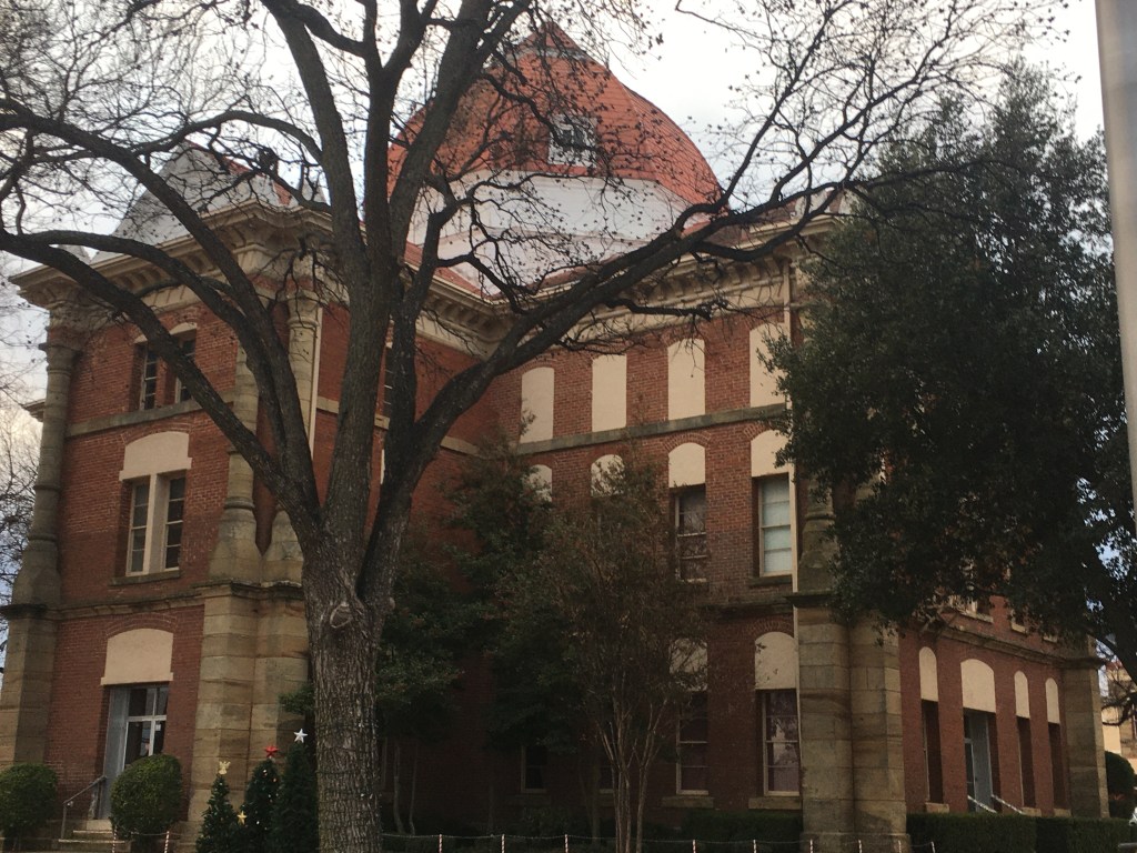 This is a weird courthouse. I cannot for the life of me figure out where the front of this thing is! I usually use two criteria to determine that in questionable situations: the flagpole, which is usually in the front, and the dumpsters, which are usually in the back. There are flagpoles for the war memorial, but not a separate one for the courthouse. There aren’t any dumpsters around here, either. Therefore, this photo is merely a guess based on the fact that there’s a bandstand here and that would be out front. That makes sense, right?