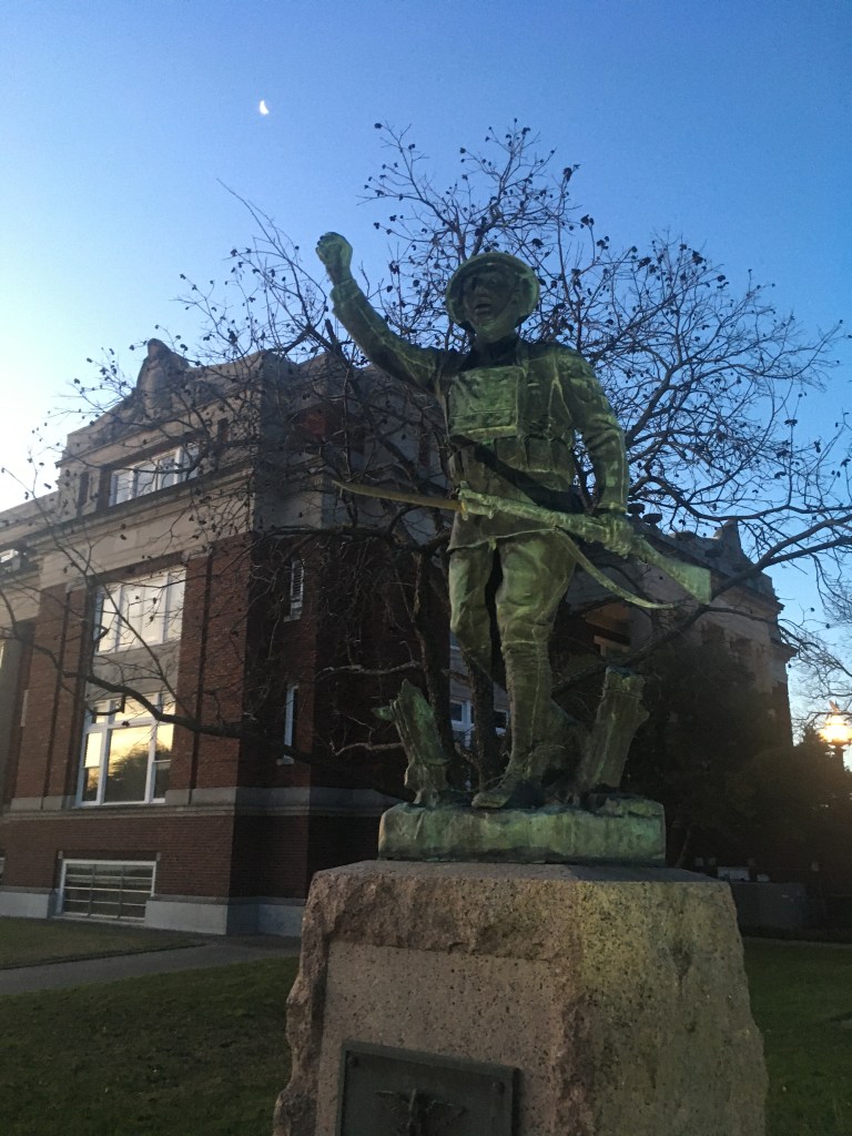 That said, there was a cache waiting right here for me! It’s lovely when someone leaves a cache at the courthouse. It saves me so much time and effort! A quick little nano hidden on one of the monuments… It was a little annoying, though, because I had to take off my coat to reach it. No big deal in the summer, but when it’s 40 degrees? Kinda sucks.
