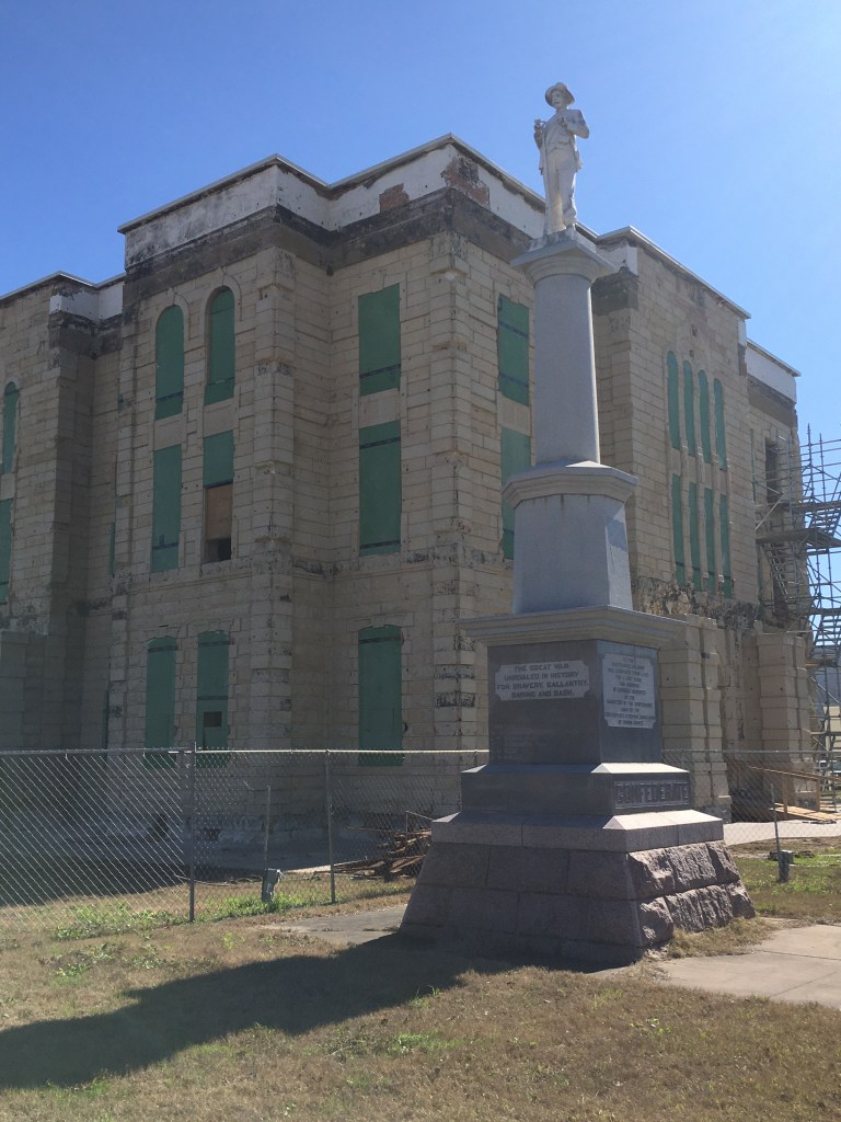 Well… This old girl has obviously seen some better days. On one hand, it’s always nice to see a courthouse getting some tender loving care. On the other hand, this is not so much “tender loving care.” Gutting seems to be the watchword of the day.