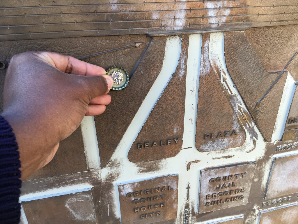 …Dealey Plaza. Under normal circumstances, nobody outside Dallas would have probably ever heard of it. Unfortunately, the day before Doctor Who premiered, someone was assassinated here. All joking aside, I did find a certain irony to finding my final cache at the location of an assassination on the birthday of a man who was also assassinated. The fact that the two men knew each other added an extra layer to it all, but in the greater scheme of things, these things happen. Men of power are more likely to have congress with one another and are more likely to meet such grisly ends. It is, for good or for ill, the way of things. For my purposes, though, the important thing was that there is a virtual here, The Grassy Knoll, named for a conspiracy theory surrounding the Kennedy assassination. The silly thing about it is that it took me forever because there were two ladies standing in front of my goal and every time I disengaged to reach it from a different angle, the two of them literally moved to block my path. After my fourth attempt, I just sat back and let them move. That took what felt like an eternity. They were just milling about watching the Zapruder film. And, no, that is not some kind of clever euphemism for moving lackadaisically. They were literally standing there, watching the film, changing perspectives, jabbering on about it. Once they moved far enough away, though, I swooped in for the proverbial kill…