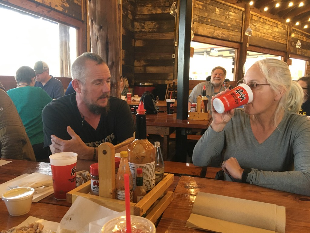 Then we went to get a Letterbox. As fate would have it, I ran into the CO there! He decided to come and do some maintenance and since he had it right there in his hands, he let me claim it! After that, my daughter and I took a shot at a simple Multi, but between us we couldn’t find the relocator. Poop. I thought about a next move for a couple of minutes. I could go grab a Whereigo, but that would involve driving across town (I’d already done about a hundred miles locally) and, to be honest (and I’m sure I’ll get some flak for this), I’m not that big on Whereigos. Maybe one day, but not today. That and there were already preliminary whines about hunger so I opted to head for an Event.