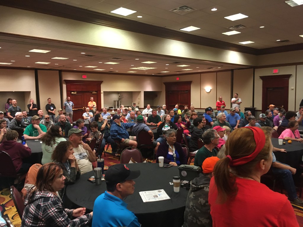 …the final day arrived. On the final day there are two events: a regular event and a CITO. At the event the location of the next Texas Challenge is announced. And when we gathered, the next location was revealed to be in West Texas, specifically, Cisco. But what you see above isn’t the event. It’s the CITO. At the end of the event, the heavens opened up. The storm that we were afraid would would wash out the big show the day before finally and unfortunately arrived. The entire thing was moved inside because there was business to be conducted. The winners of the Challenge were to be announced! At this point, I’m going to put on my partisan hat considering I was captain of Team CenTex.