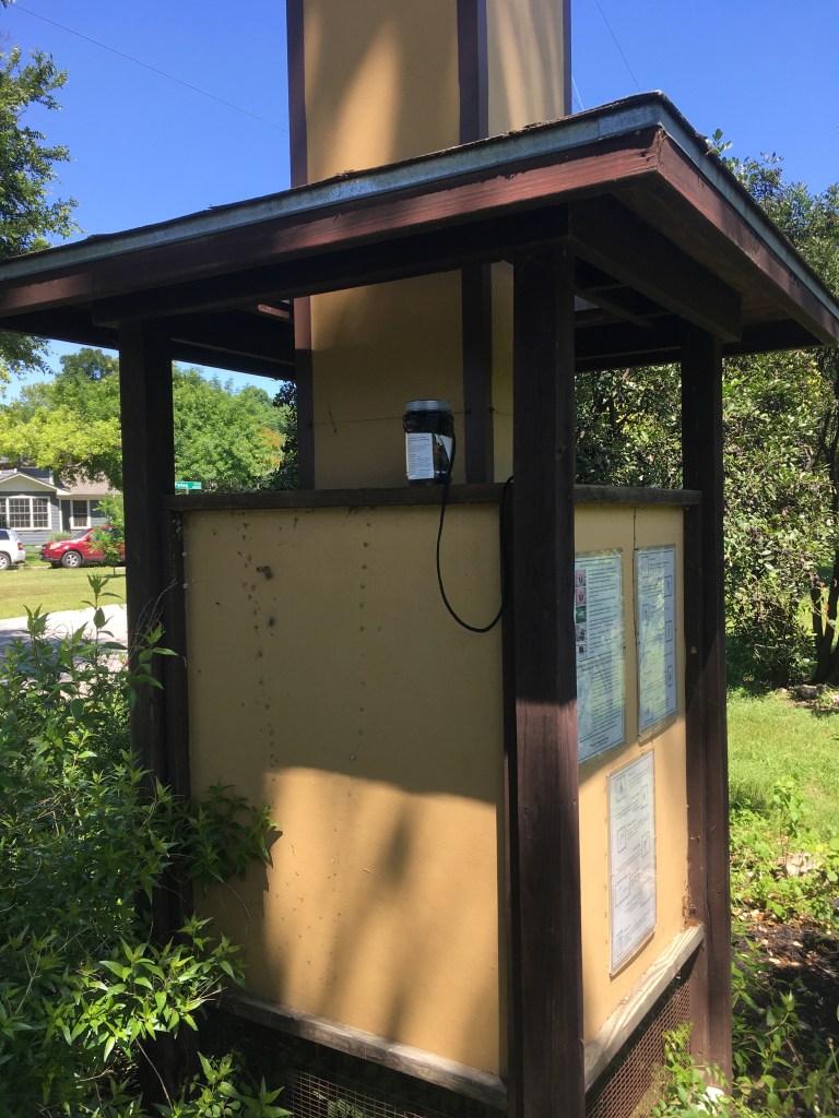 This is one of my daughters at the largest squirrel statue in the world! No, there wasn’t a cache there, though there used to be. She and I took a trip to Bastrop (the next county over) to get some exercise and a cache (which I forgot to photograph) and we decided to check out the squirrel (and the pecan based gift shop attached) on the way back. While this may technically qualify as unnecessary travel, we both took good precautions and it was a fairly short distance. Sometimes you’ve got to stretch your legs a little so you don’t go stir crazy.