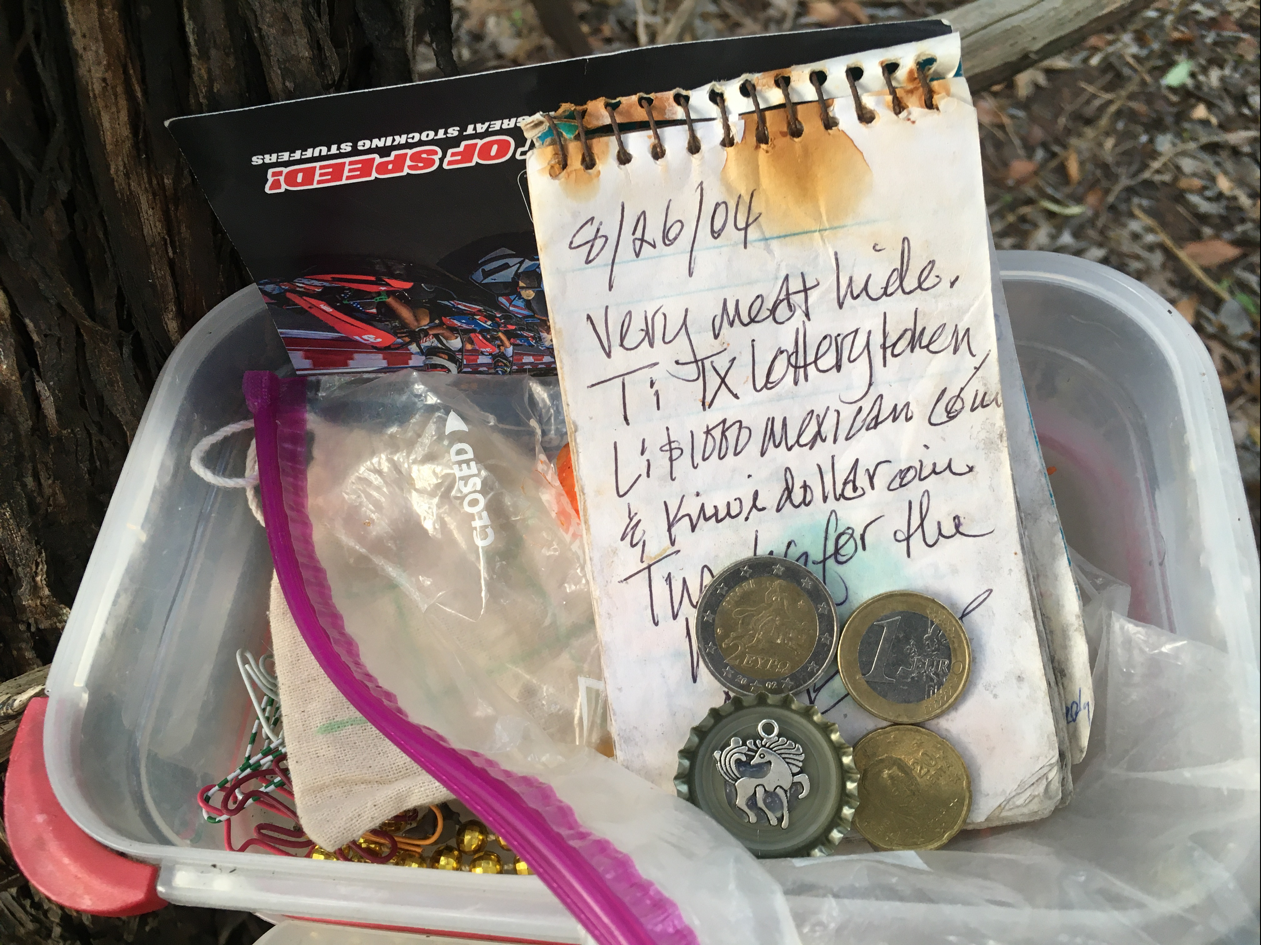 The parks are packed these days. Everyone is getting out to them to use them for exercise. It’s really the only thing we’re supposed to do so everybody is doing it. This, of course, creates the interesting problem that they may or may not be getting packed enough to become their own hot spots for contagion, but I saw the majority of people social distancing, wearing masks, or both so I guess I’m not too worried about it. That, and Austin is taking this pretty seriously overall. But this also means that park caching is a bit difficult these days. Everywhere is overrun by muggles! Why does any of this matter? Because I needed a cache for the day a couple of days ago so I decided to get one I’d been meaning to go after for a long time in a park (the same park, coincidentally, where this one is). It’s an unknown that’s one of the oldest in town, and the only real question about it is why it’s an unknown instead of a traditional. They make light of that in the cache description, though, so I’ll give them a pass. It’s also supposed to be a coin exchange. People are supposed to bring foreign coins to trade out with other foreign currency. Of course when I found it, no coins were contained within.