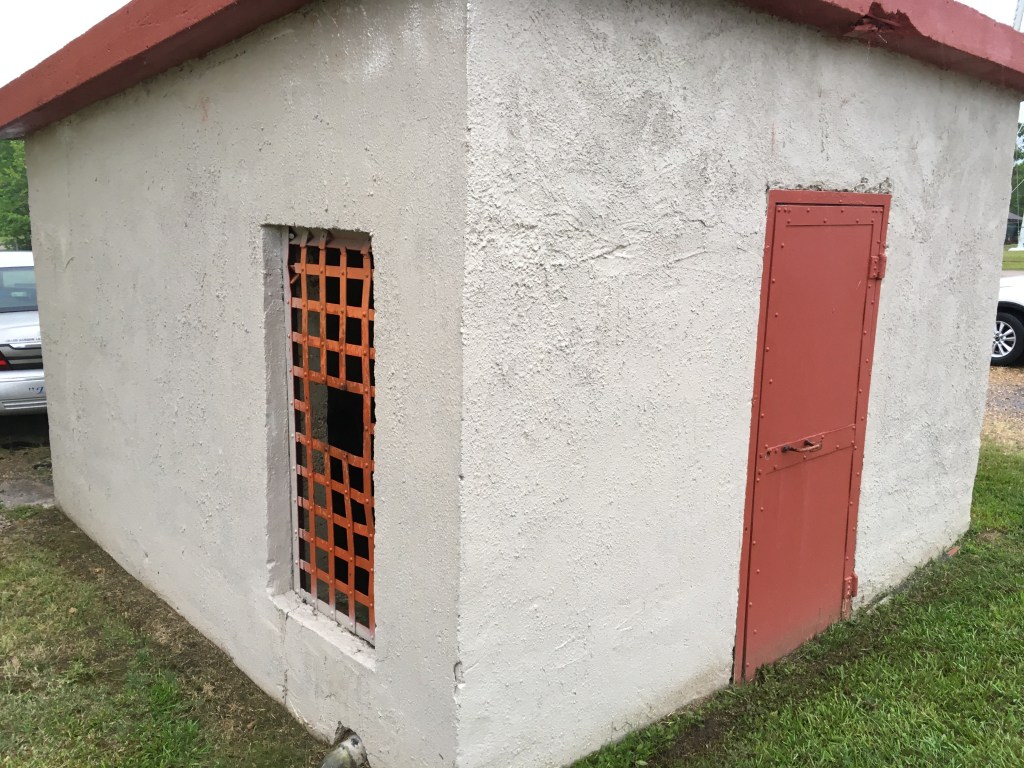 I ended up grabbing the cache on the way to town. There aren’t many in town proper. Most of them are in a local state park and that was just too much effort to expend for these purposes. I stopped in a nearby town and found this old jail cell sitting outside in the elements. And what did I find attached to the bars?