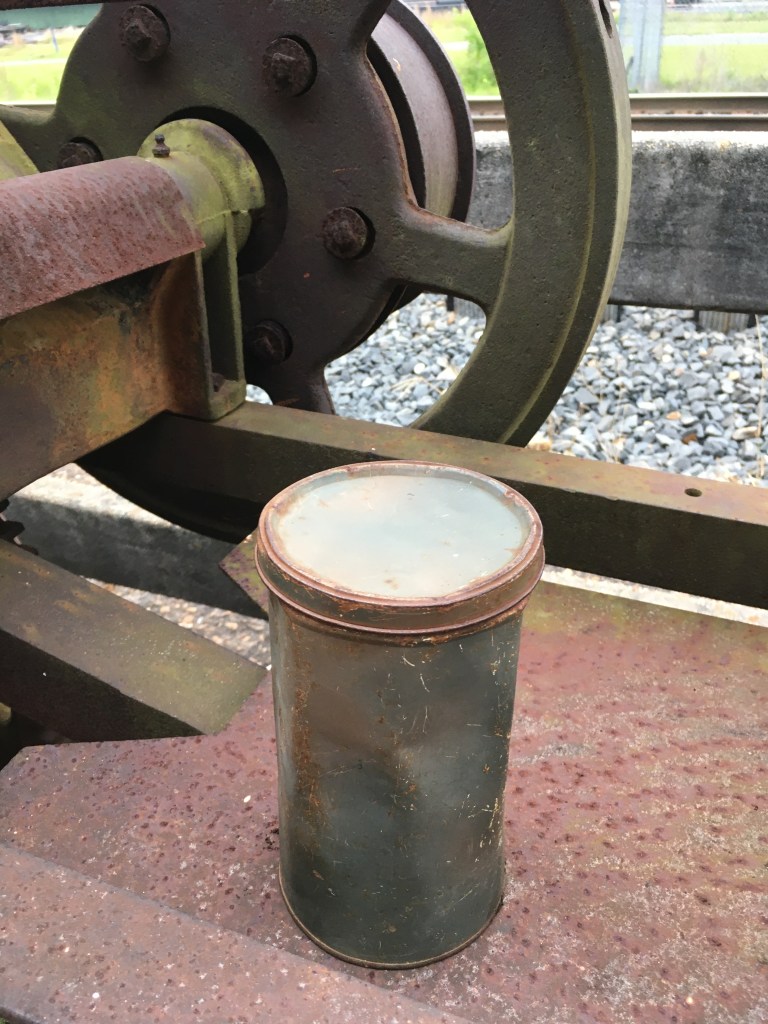 AS for the cache, well, the old Leesville train station, now the Museum of West Louisiana, would be the answer to that. Behind it, closer to the tracks, there are a lot of farming implements, odd contraptions, and just generally rusty pieces of big iron waiting to be seen. Among them, I found…