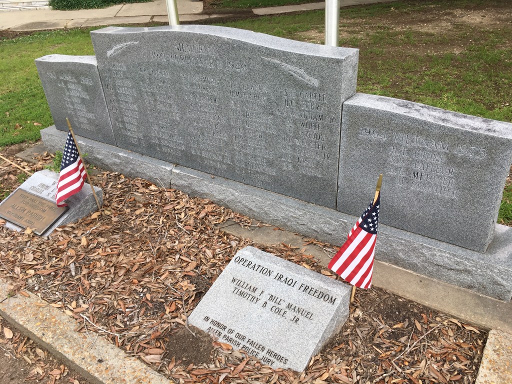 I would have thought this would be a slightly more wealthy parish than Beauregard (more on why I thought that in a minute), with more theoretical ability to do something more with their environs here. But I was quite wrong. Allen Parish is just barely out of the bottom 10 poorest parishes. But they do have a more recent war memorial…