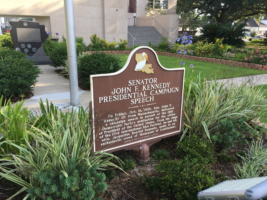 Apparently a nice young man gave a speech here a number of years ago and the parish thought well of it, well enough to put up a permanent marker. Some time later, for no particular reason, somebody shot that nice young man when he was riding in his car. No, I’m not making light of it, Mr. Forrest Gump made light of it. But it also makes a bit of a point that there doesn’t seem to be a lot going on here.