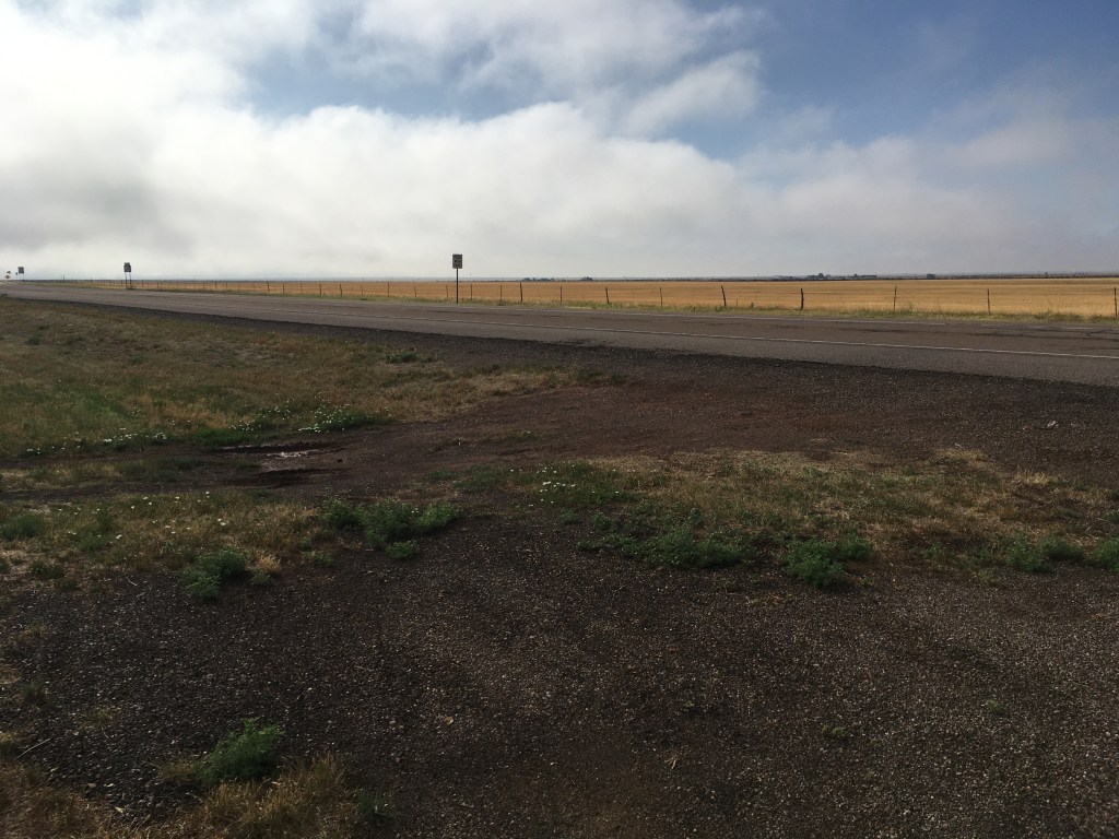 Those are some wide open spaces. It’s a little strange because Texas has open terrain like this, but here in the middle of nowhere New Mexico, it literally feels like everything exists just for you: the sky, the plains, the road (which is why I made up a lot of time coming up from Portales [that and the speeding {don’t tell the cops <nested parentheticals for the win!>}])… And with the road being so empty, the spaces so remote, it leaves me wondering why New Mexico doesn’t have better speed limits than it does, but that’s ultimately neither here nor there. I set off again after gassing up and grabbing breakfast, hoping to make up a little more time that was lost earlier, taking me from the relatively urbane, small town, touristy streets of Tucumcari to the quiet and deserted streets of…