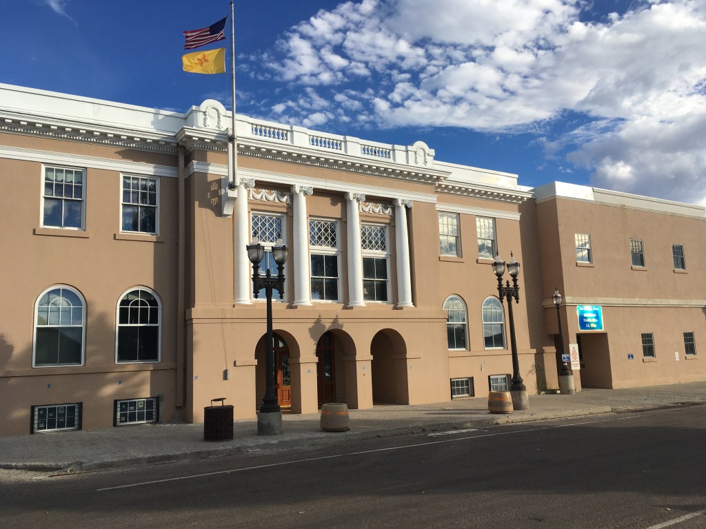 …as the main photo for this entry. But the county courthouse, located 180 degrees behind this vantage point, is so much nicer and more in line with the aesthetic I have been engaging. Yes, I chose to feature the prettier building over the more appropriate edifice. It was a difficult editorial decision to make (it really wasn’t), but these are the earth shaking decisions (it’s not that important) that one must make when all the weight and power (there is neither weight nor power) rests upon one’s shoulders (my shoulders are quite unburdened, folks). As an interesting sidenote, the courthouse was designed by Isaac Rapp, considered to be the father of the Santa Fe Style. All this stucco I’ve been complaining about all over New Mexico, therefore, is probably his fault. Given a time machine, I would happily punch him in the face, along with Isaac Newton, and possibly some other people named Isaac. Reflecting on this, I observe that my time machine physical assault list is actually amazing short. But that is neither here nor there (or should that be “now nor then”?) because the cache is the thing!