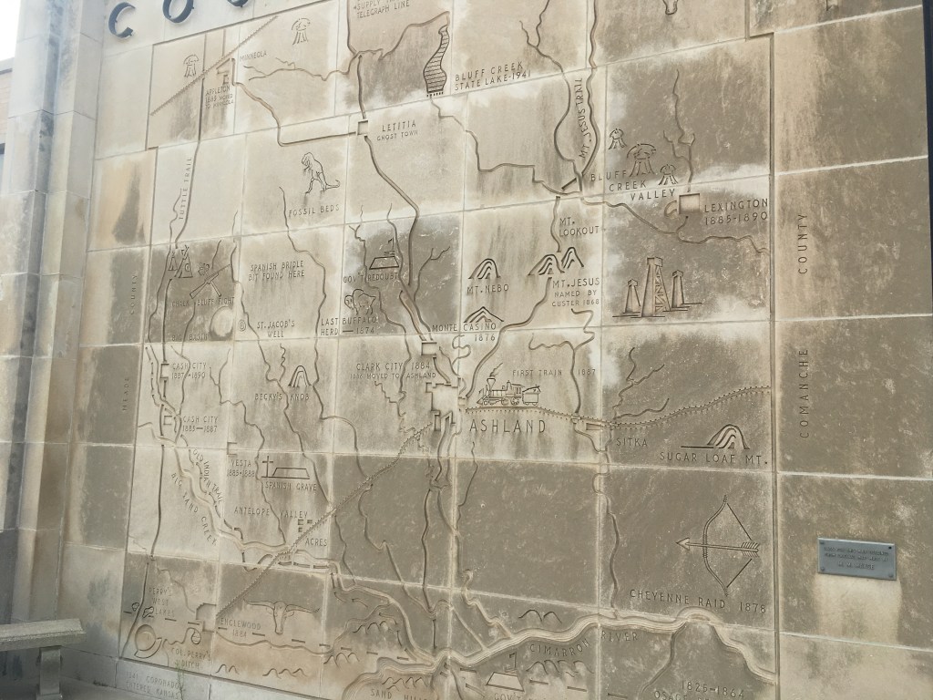 Any disenchantment I may have felt about this courthouse went up in smoke once I started looking at this map on the front. This I like. I don’t remember seeing any other such maps anywhere else, though I haven’t gone back in the archive to be absolutely sure. I think I’d remember something like that, so I’m going to trust my gut and say this is all new to me. I wondered if this would be a continuing motif for Kansas. If so, that would augur well for my journey from a courthouse perspective. Or maybe not. Let’s face it, this courthouse isn’t all that inspiring.