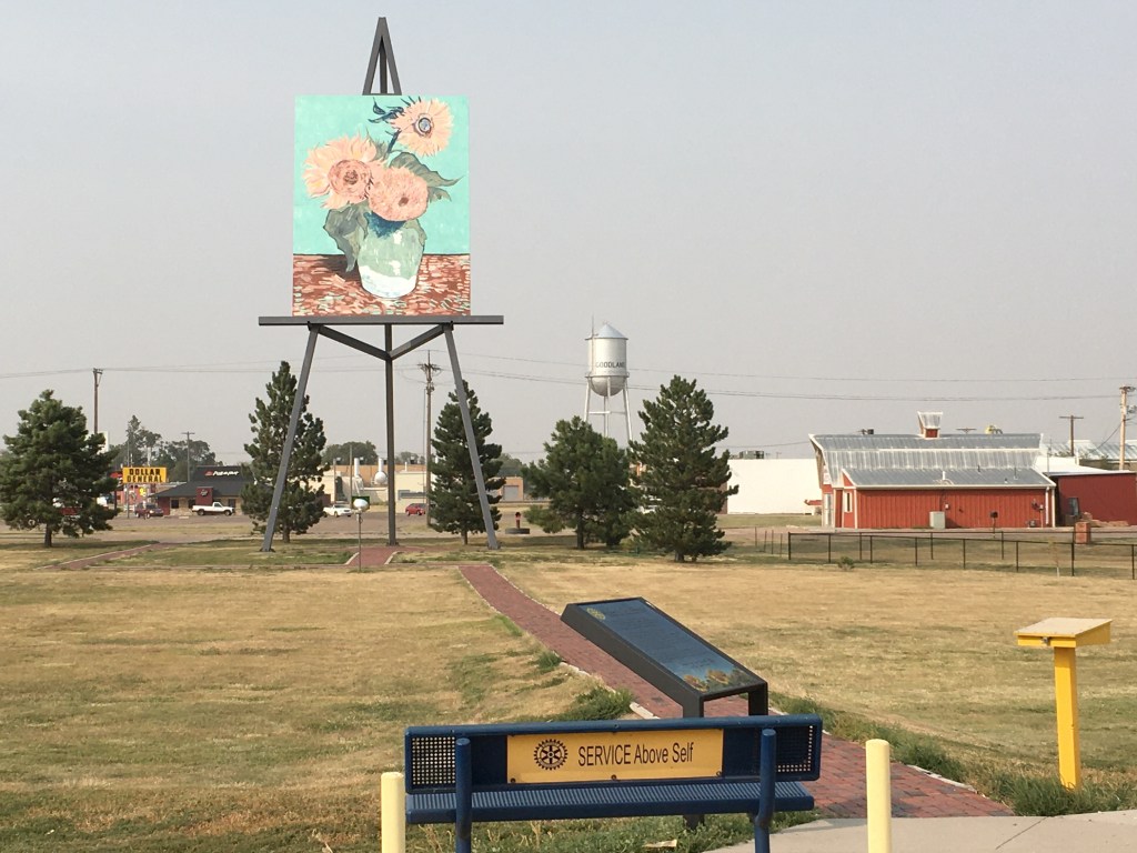 …once again we thank the Atlas Obscura. At this rate, it seems to be replacing Quanah Parker for the coveted position of “Homeboy.” This is the largest easel on Earth. And if you’re into Van Gogh, bonus. I, myself, am more of a neo-classical guy (Poussin, Ingres, David) who thinks impressionists are lazy (full disclosure: I do have a soft spot for Romantics like Turner and Delacroix and Baroques like Caravaggio and Gentileschi [Artemisia and also, to a lesser extent, Orazio]). But this was alright, I guess. I actually spent quite a while trying to find where this one could possibly be. Everything was pointing me toward a lot of nearby electrical boxes and big iron, but there was nothing to be found. The packs of muggles who would stop and look at the thing made for a bit of difficulty, but provided an opportune moment to look at the logs. Turns out that to CO decided some time before to eschew a regular hide and and make the visitor’s log the cache. I thought about it a little. It is a log for signature inside a container. The fact that everyone, cacher or muggle alike can sign it doesn’t really have any bearing on it, yes? Technically, I’m a little worried that it runs afoul of some guideline and that might get the cache in trouble, but I’m counting on the fact that Groundspeak and/or the reviewer have a good sense of humor. But it is a heck of a location to find one in the middle of Kansas. Once I signed the log, I got some food (despite the lady in front of me negotiating the Magna Carta with the drive through cashier) and continued on to…
