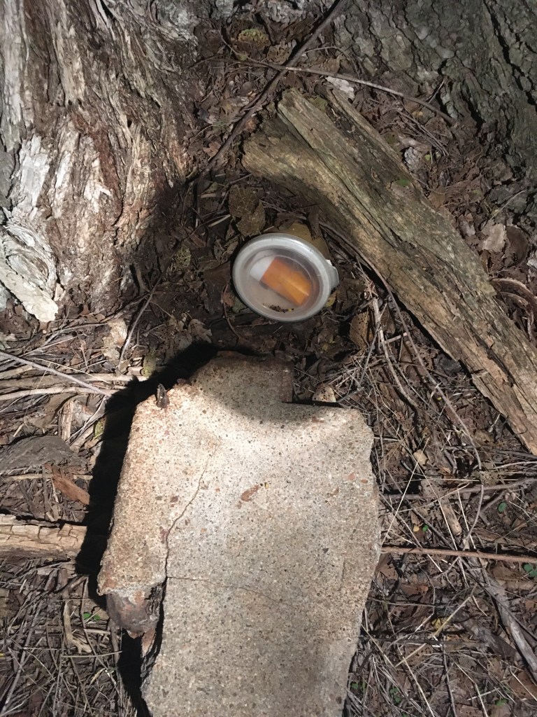 This one feels like a cheat. Maybe this can be considered a passable photo, that’s not as bad as some of the others I’ve gotten in the past, but you can barely make out any detail at all. How can I make any architectural judgements if I can barely see the architecture itself? Knowing that you all expect a certain amount of quality from me (or, more importantly, that I expect a certain level from myself), I’m beginning to question whether this is a direction I might want to go in the future. I thought I might save it for emergencies, for instance, getting somewhere a bit too early or too late for good light, but I didn’t think that this would be the beginning of a new era of night photography for me. At least I didn’t at the time. The more I’ve considered it… So I’ve bought a camera and maybe I may absorb some tutorials on photography, especially in low light conditions. A phone is definitely not up to the task, but with real equipment, it might be a real possibility. I’ve got some time to experiment before I make my next great roadtrip (it looks like it’s going to be over Thanksgiving weekend), so let’s see where we are at that point. Heck, when I get back up this way, I might even take a shot at a replacement photo here! I have fancy plans (and pants to match), and a little night photography could make a whole lot of difference in the vastly shortened days of winter. But, right at that moment, I was where I was and had done what I had done, so it was only right that I get a cache and make it worth debasing my journalistic principals.