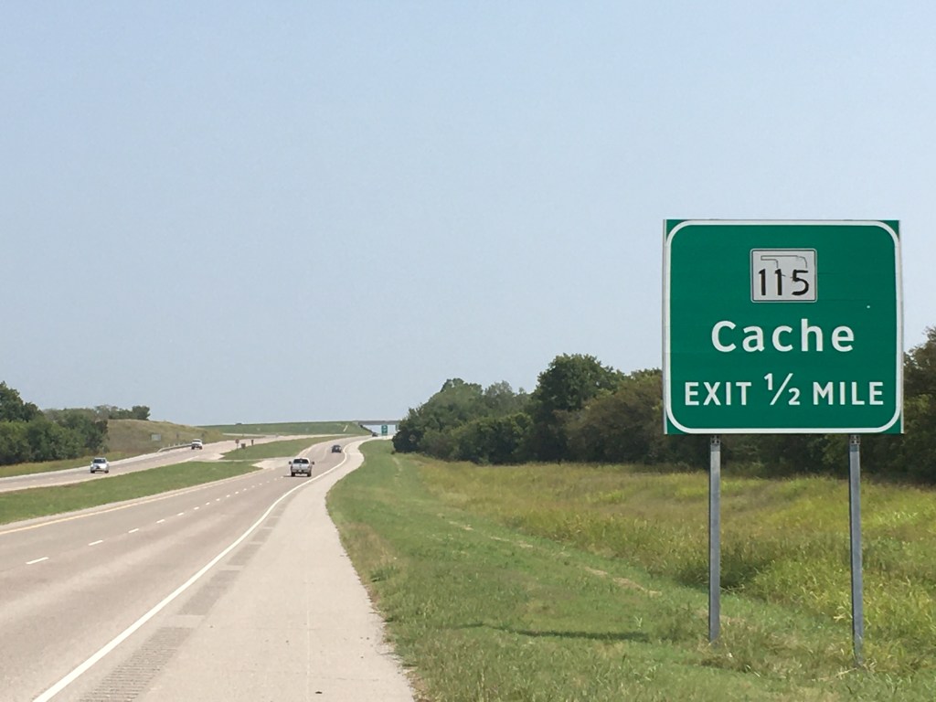 Lawton is the location of Fort Sill, Home of Artillery. Full disclosure: the photo isn’t mine. I passed by one of the gates, but I was too preoccupied to stop and photograph. That and I’m not aware of the current status of the base vis-à-vis visitors during the time of cholera. But this is definitely a place to return to at some point. Not only does it have the only Atomic Annie that ever fired a nuclear round, it is also the final resting place of both Geronimo and, more importantly for my purposes, my old homeboy, Quannah Parker. As you can imagine, there are no physical caches on post. I don’t actually know if it’s in the rules, but I’ve never seen one on a post. It doesn’t take much to realize why, considering a cache would be a security issue that nobody running a post would be willing to fiddle with. However, there IS a virtual at the grave of Geronimo. Had I been thinking, I might have tried for it, but I think I’ll go visit it when I come back through the area. It would have been no good for the purposes of the Oklahoma County Challenge anyway. Besides, I already had one. Have you ever had a cache pick you? Well, I was driving down the highway and almost did a spit-take…