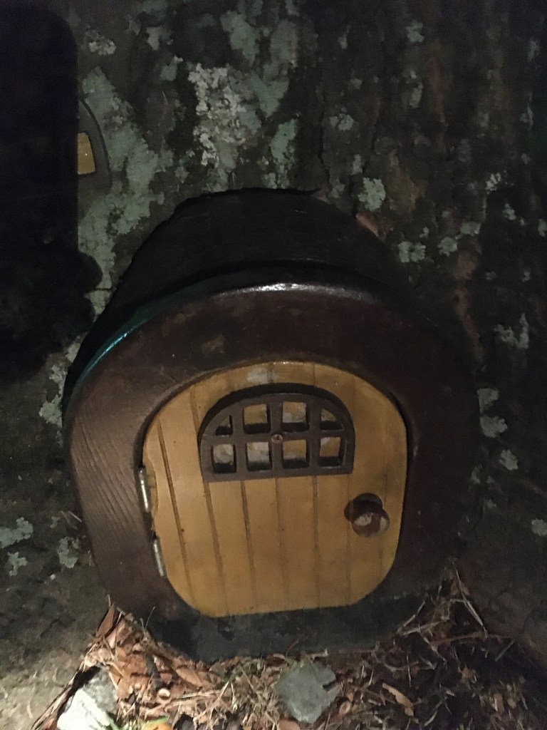 Alright, while I have been known to rant a bit about the perils of gnomish hegemony, I’m suitably impressed. This thing has a drawer with 9V batteries in it and connection points. Connect the batteries and it lights up lights on the side where the holes are. Connect up the correct light series and you get the combination to the lock containing the cache. Of course, you might be geocaching with a little one. In that case, there’s a door at the foot of the tree with another cache for the smaller cachers. There’s a reason this cache has so many favorites. And it earned one of my stingily hoarded ones, too. And with that, my work here was done. I took to the highway again (the other exit out of town was more reasonable) and prepared to meet the sun in…