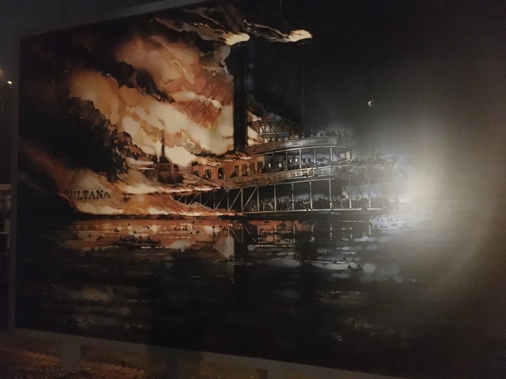 So, at GZ there is one heck of a painting. I think I had heard of the Sultana before, but certainly never knew anything about it. Of course, much like C.S. Lewis and Aldous Huxley, its fiery demise was overshadowed by greater events. And I never saw it portrayed so vividly so kudos to the artist, whomever they might be.