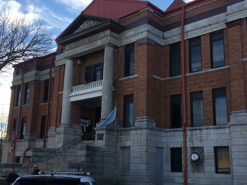 Red brick! This is new and different! Yes, that’s totally sarcasm! Brick and Oklahoma go together like rice and something that goes with rice. I had only recently learned of Oklahoma’s long history, dare I say love affair, with brick manufacture, especially in this area. Therefore, everything around here is going to be brick and since the red earth of Oklahoma is renown for being the earth of Oklahoma, those bricks are going to be red. All that said, it is a nice looking courthouse. Not particularly imaginative, but then again does the courthouse have to be imaginative? It’s not like the people require avant-garde architecture and is the county really served by that anyway? Better solid, safe, and stable than…interesting. In a weird twist, I managed to scare some deputies with my photography (as evidenced in the lower left hand corner). A bunch of them where chatting it up outside and I didn’t want to wait until they left because, well, they’re the cops and it’s their county so who knew how long they were going to be there? When I started photographing, they all looked at me like deer surprised by a flashlight. They all scurried off inside to speak without the possibility of civilian oversight (or maybe to get warmer since it was pretty chilly out) as I was driving off.