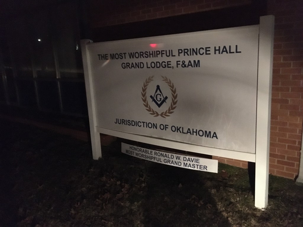 Another Masonic lodge it is! While the lodge back in Wagoner was an Ancient Free & Accepted lodge, this one is a Prince Hall lodge and, as fate would have it, I know quite a bit about Prince Hall! The cache was a little magnetic thingie stuck to a light fixture. Once I did what needed to be done here, I departed from my illegal parking spot out front (seriously, who cares at one in the morning?) and drove past the port, rolling through the darkness until I reached…