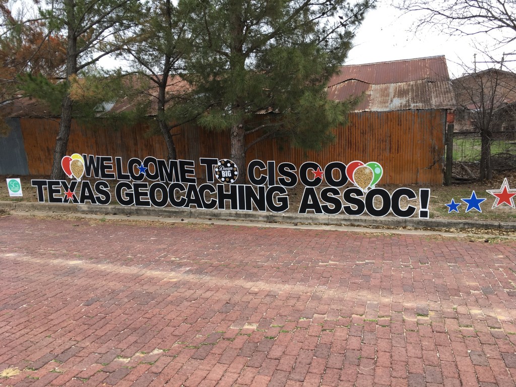 I got up early and picked up a few whereigos and letterboxes, completing my first superlative: that Friday was my 1000th day in a row of caching. Then I popped over to Cisco proper. Cisco is a quiet town with a bit more going on than you would think. It’s primary claim to fame is being the home of the Moberly Hotel, the first hotel owned by Conrad Hilton. <sarcasm>I’m sure you’re familiar with his impressive series of TikToks. </sarcasm> But I had donuts to acquire so I headed on over to the breakfast event at the local donut shop. There, I rubbed elbows with some famous cachers, including Messr. Gary Slinkard, a cacher of some renown, and, for the first time, the one and only Mr. Memfis Mafia himself, Jesse Lunsford. I kick myself for being a terrible correspondent and failing to document the event photographically. Then again, I had a lot of things on my mind. For those of you who don’t know, being on the board of the Texas Geocaching Association, I helped put on this entire shindig. Also, don’t think I’m taking credit. There are a lot of people on the board who put in far more work than I did. My contribution was small. All the credit and glory goes to them. But I did have things related to it on my mind, consuming my thoughts. I had a small window of time to get some caching done before I had responsibilities to engage in so my first move was to start hitting some more Adventure Labs in Cisco.