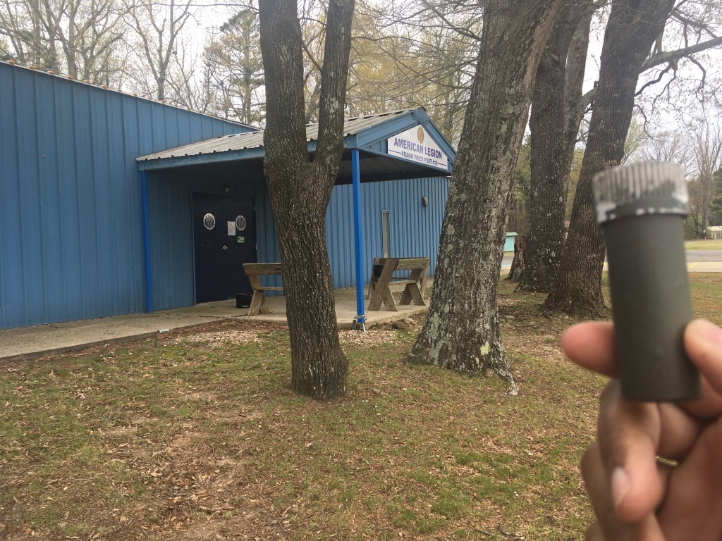 My stop in Mena proper was pretty short because I had picked up the cache on the way into town. On the way in I had noticed there was one at a baseball field, so I turned off to go after it. It turned out to be behind the baseball field at the American Legion Post here. It was somewhat cleverly hidden in the hole of some kind of plastic base, possibly for a water tank, but I never quite figured that bit out. All that really mattered was that I found it, signed it, and returned it, meaning that the town was really little more than a stop sign for me on the way to…