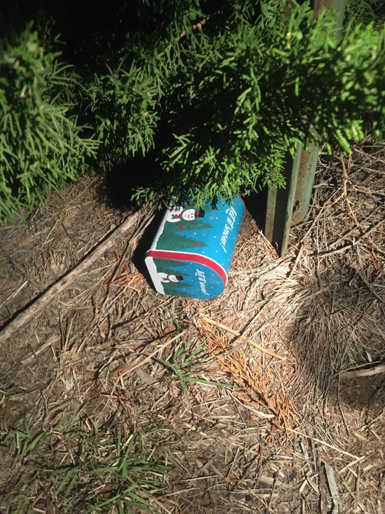 So, I went to the closest cache to town, but it turned out to be in a cemetery and the description didn’t mention it. I probably should have figured it out from the title, but it wasn’t obvious and I wasn’t going to fiddle with a cemetery at 3 o’clock in the morning. That’s a negative, Ghost Rider. I found another one in a nearby community on the way to my next destination. At the foot of a sign pole was a little Christmas themed mailbox. I pulled out a trackable and put one in and then signed the log. BOOM goes the proverbial dynamite! Oklahoma was officially done! I would have let out a little war whoop, but I was across the street from a residence in the middle of the night so I opted not to make any unreasonable noise at that hour of the morning. And with this, I had completed all the counties, completing the first goal of this trip. Well, actually, there’s another shadow goal of this trip, but that’s not important right this moment. What was important was that one goal was done and I was on the way to…