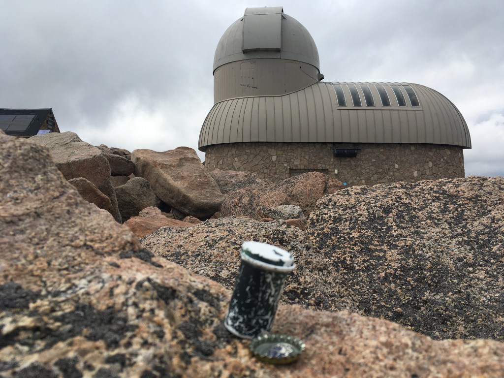 What a view! This is 14,265 feet above sea level. And this is where my Greek tragedy began to unfold. Whenever I plan to visit a county, I have a list of caches downloaded for that county in case I have no phone reception, a lesson forced into me by places like Menard and Paint Rock (haven’t heard that name in a while, huh?). Well, the night before, I forgot to download any lists, so here I was, unable to pull up any cache locations because service was lacking at the top of the mountain. I tried over and over and eventually decided to walk around and hope that my geosenses would lead me to the regular-sized cache that I knew was up here. I looked in so many nooks and crannies, to no avail. I decided to send some messages to a few people from up here because, well, I was up here, and one of them responded! That meant I was getting a signal! It wasn’t much, but it was just enough to finally get caches on the map! Deus vult! It turned out that there was a Virtual on the top here, and the regular I had been looking for was back down the mountain near the parking lot. I logged the Virtual at the Top of the World and then went back down for the regular Traditional.