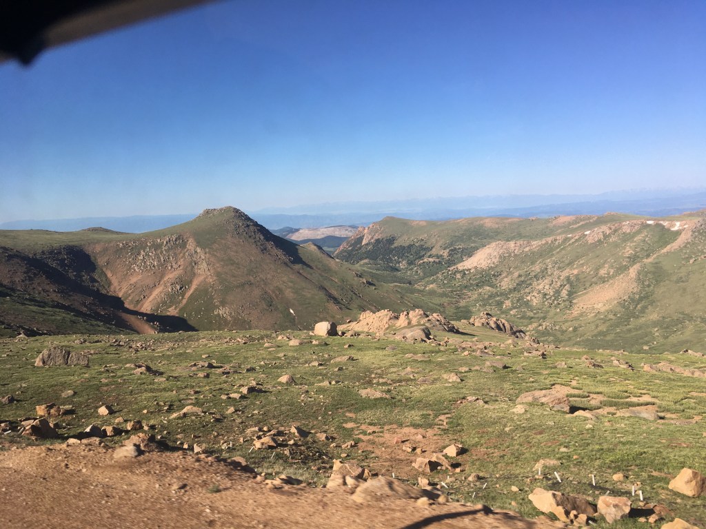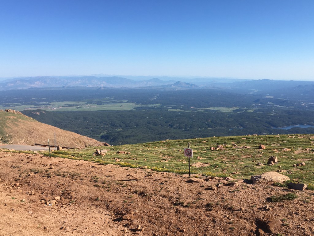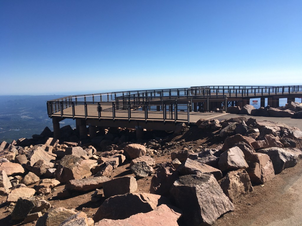 Welcome to the mountain that Zebulon Pike said couldn’t be climbed. I had to wait in line for an hour to get in. I drove to the entrance and got there half an hour before it opened, only to find out that it opened an hour after I thought it did. So, I waited some more. Being so early did result in being close to the front of the line, so at least that made up for being too early and losing time. Once the gate opened, though, I began my drive up. Had to stop partway up to hit the bathroom. Needing to go at only eight thousand feet was inconvenient, but there was an inn/tavern halfway up with adequate facilities. They’d been doing renovations at the top for quite a while, so the (incomplete) top parking lot was only available for visitors with small children and people with disabilities. I had to park partway up and ride one of the shuttles. Again, more time lost, but if there was a better place to play tourist, I hadn’t seen it yet on this trip.
