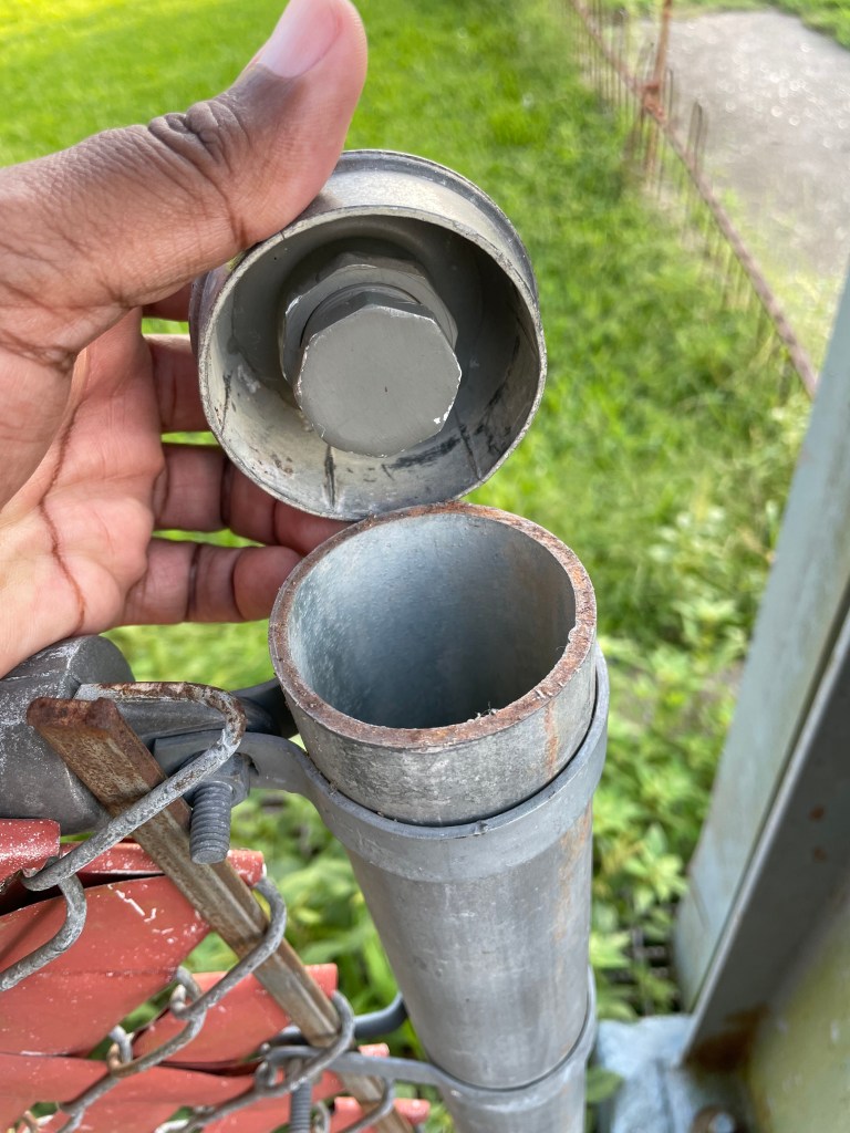 The cache was on the next block over, a quick walk away. A small container glued (more likely epoxied) under a fence cap, it was quick, easy, and to the point. The sun was just starting to lower in the sky, and I estimated I should have one more parish worth of sunlight to work with. With that, I mounted back up and set off again, racing the daylight to make it to…