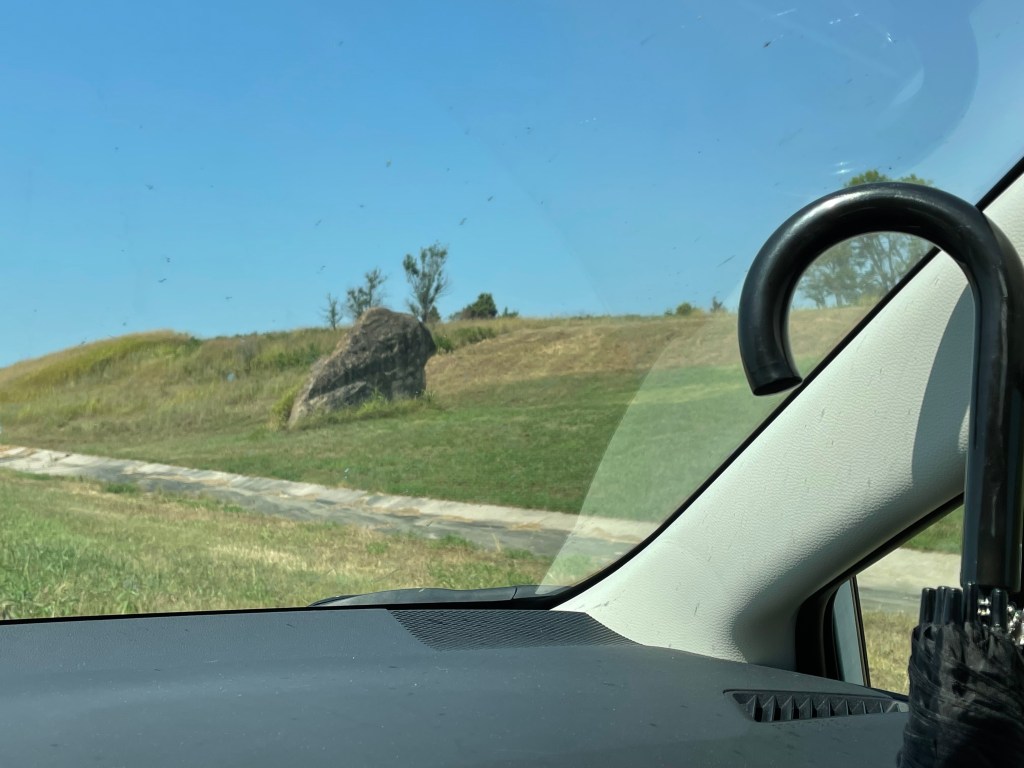 As for the cache, I had hoped to get something in town. I always prefer to grab something in town or on the way to town because if I’m on the way out and try to grab something, I might have to double back or, worse, grab something in the wrong county. In this case, I saw a virtual and figured that that would be safe enough and there were a few nearby traditional and an earthcache if it wasn’t. It turned out to be related to a strange geological formation in the area, not entirely pictured here because the formation layout was part of the solving. Basically, it was a series of rocks that are seemingly out of place with the landscape. The earthcache was there and went into greater detail on the geological nature of their existence, but I had neither the time nor the energy to get into that. I was running and gunning a little because this was the start of the penultimate leg of my journey. I wanted to get home as soon as I could an at a reasonable hour and I had one final stop to make on the road to the highway, claiming one final county, finding one final cache in…