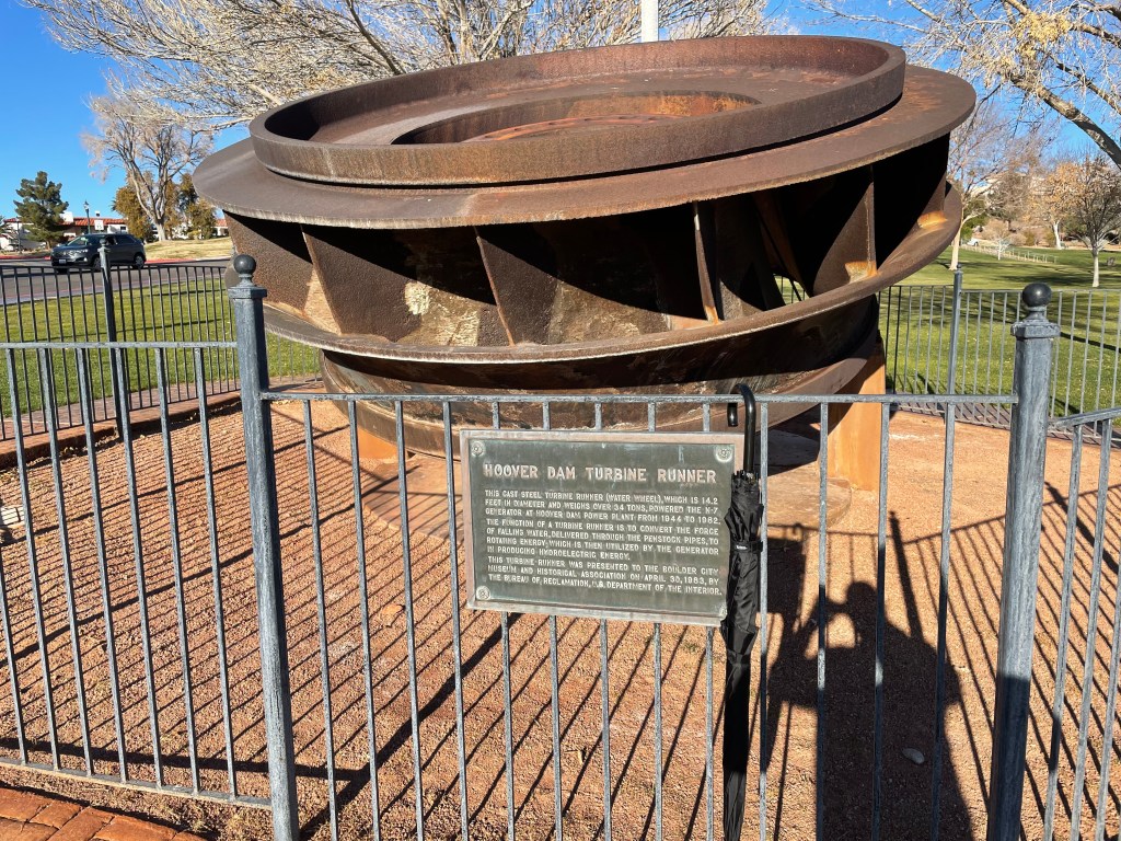 Somewhere around here, I realized I had never gotten that lovely voice welcoming me to either Arizona or Nevada. I slipped into Boulder City for a bit, and it was like driving into Chinatown. The broad streets and palm trees shading the bungalows felt like stepping into the Los Angeles of film. The town was constructed for the workers building Hoover Dam and has retained the charm of the 1930s. At the same time, the tumblers and tai chi and yoga practitioners in this park spoke to the modern day. I feel I could spend a couple of days there vacationing. I grabbed a couple of Virtuals and hit a trackable Hotel with a long list of trackables in it, but only a couple in residence. Log your trackables, folks!