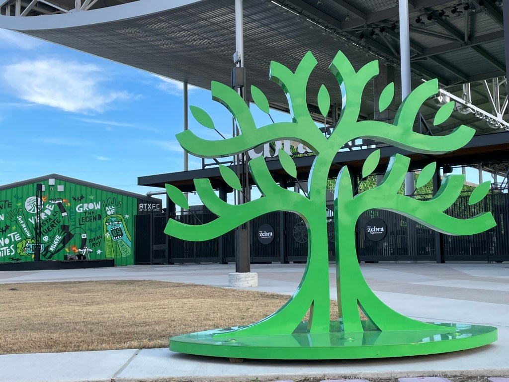 I took a day to do some Adventure Labs. I know there are a lot of people who don’t like them because they don’t consider them “real caching.” I get why they feel that way. I will even admit that they somehow feel a little “less than.” However, if a Virtual can be considered real and a Whereigo can be considered real, how can a hybrid of the two be less real? At the same time, though I usually aim for a cache a day, whenever I do an Adventure Lab, I make a point of doing two or three at once so that it feels like I did something more. This time I decided to do a series around Q2 Stadium, home of Austin FC, Austin‘s soccer team. Fun fact: until the team came along, Austin was the largest city in the country without a major league professional sports team (sorry, Ice Bats, but you don’t count). Sure, they’re hardly Real Madrid or Manchester United, but they’re ours.