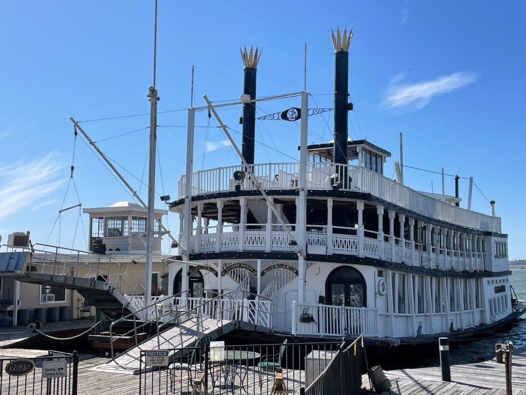 We rolled around nicer communities and suburbs in the county, eventually finding ourselves at Lake Conroe on the dock of the Southern Empress. Carpenters were working on making repairs, but enough other people had come through that they knew why we were here. They were kind enough to lay some planks down for us so we could pass over, and they pointed the cache out to us.