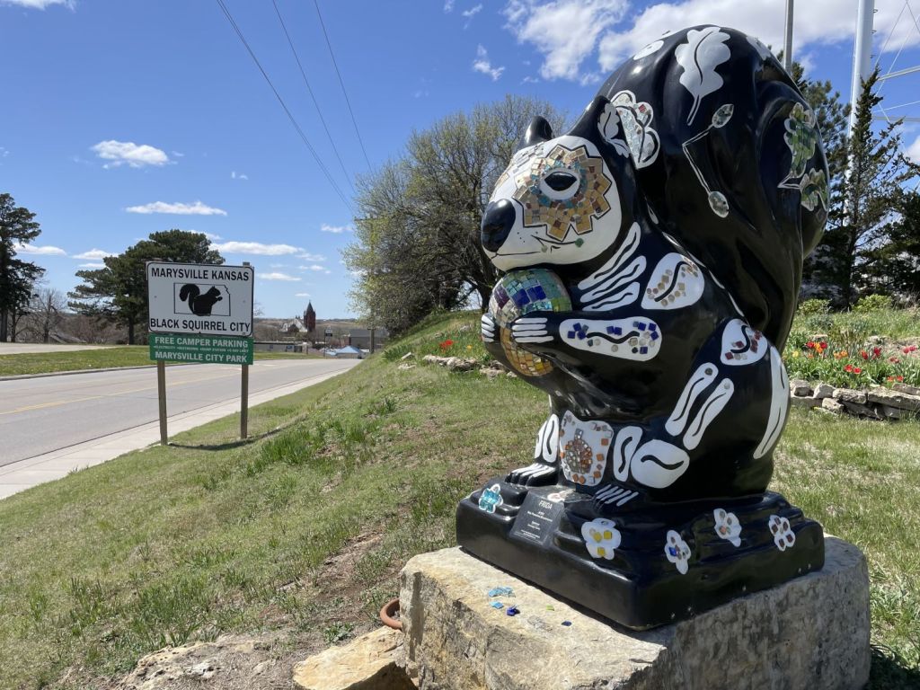 As a vaguely interesting sidenote, Marysville used to be a station for the Pony Express. Vaguely interesting, but not the big thing around here. As I pulled into town, I caught a sight that made my eyebrows rise. Some towns have pigs, some towns have boots, and some towns have Scotties. This town has black squirrels.