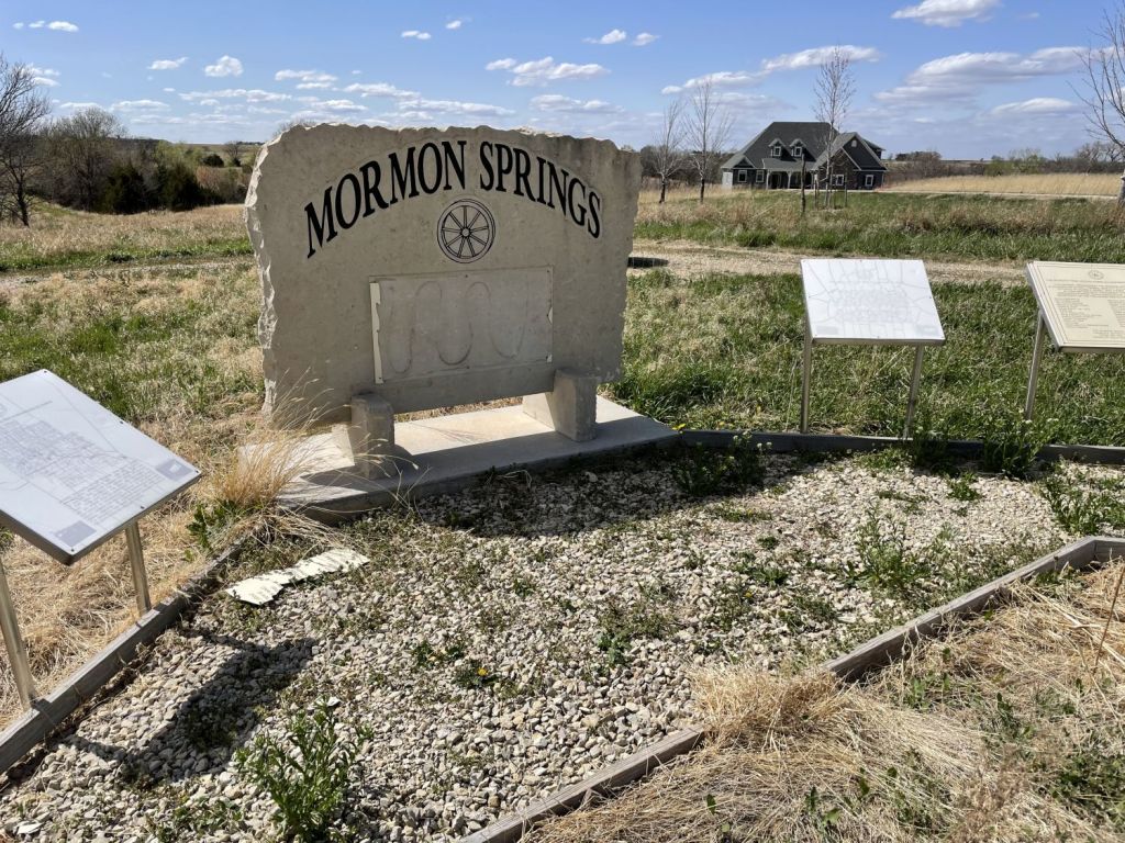 There was supposedly a cache in a community park space across from the courthouse. The hint was perplexing, but I gave it some time, though I couldn’t find it. I didn’t want to devote too much energy to it, so I popped up the road to a place called Mormon Springs. When Mormons would pass through from Fort Riley heading to Utah, they would often stop here, leaving carvings in the sandstone outcroppings of the area. I found an ammo can waiting for me in a well-hidden spot between rocks and high grass. Easy peasy, lemon squeezy, and then on the road again to…