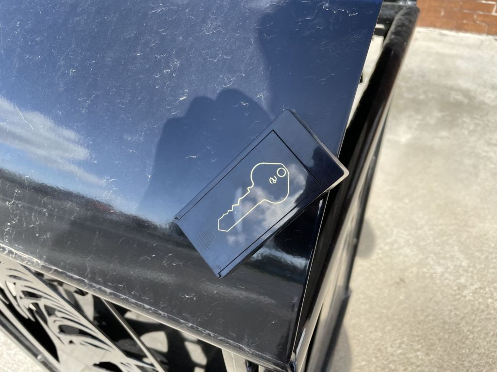 The cache made me feel a bit stupid. There were a few caches right across the street from the courthouse. I originally opted for one at a small theater on the square. I knew the cache was magnetic, so I looked and looked. Well, at least as much as I could without drawing attention. (There were muggles about, after all.) But I just could not for the life of me figure out where it was on all the metal of the facade. Once I felt that I might be drawing a little attention from the lady operating the snack counter, I decided to abort and redeploy to another part of the square. Once I arrived, I realized that there were big steel trash cans at both locations. I didn’t check for it at the first one, but look what I found at the second one! Once it was found and signed, I moved again. I was once again in a bit of a race for time. One of my soon-to-be-reached destinations had a very specific cache I wanted, and I was worried that I wouldn’t make it there before sunset. I shot off again, this time passing through…