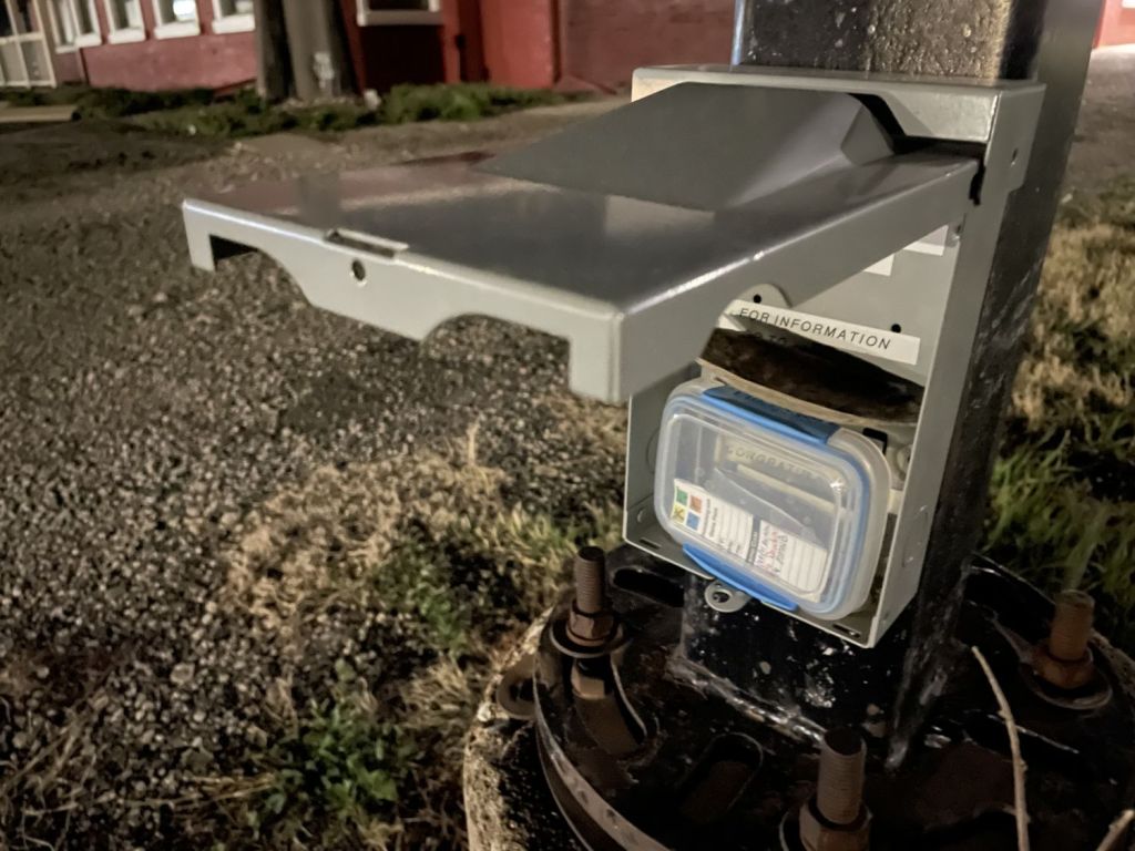 I thought about grabbing the closest cache I could find to the courthouse/senior center/whatever, but cops were swarming all around downtown. Every time I looked up, there was a cruiser rolling by, turning a corner, or popping disco lights. I was followed by two of them at one point, both hovering like vultures, waiting for me to do something. I quickly came to the conclusion that I wanted nothing to do with any of it, so I decided to grab a cache on the edge of town in roughly the direction I was going. At least I got a slightly different type of lamppost cache for my troubles. Easy peasy with a side order of lemon squeezy. Once I applied my signature and returned to the car, I once again hurled myself into the night, intent on reaching…