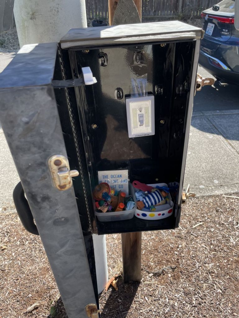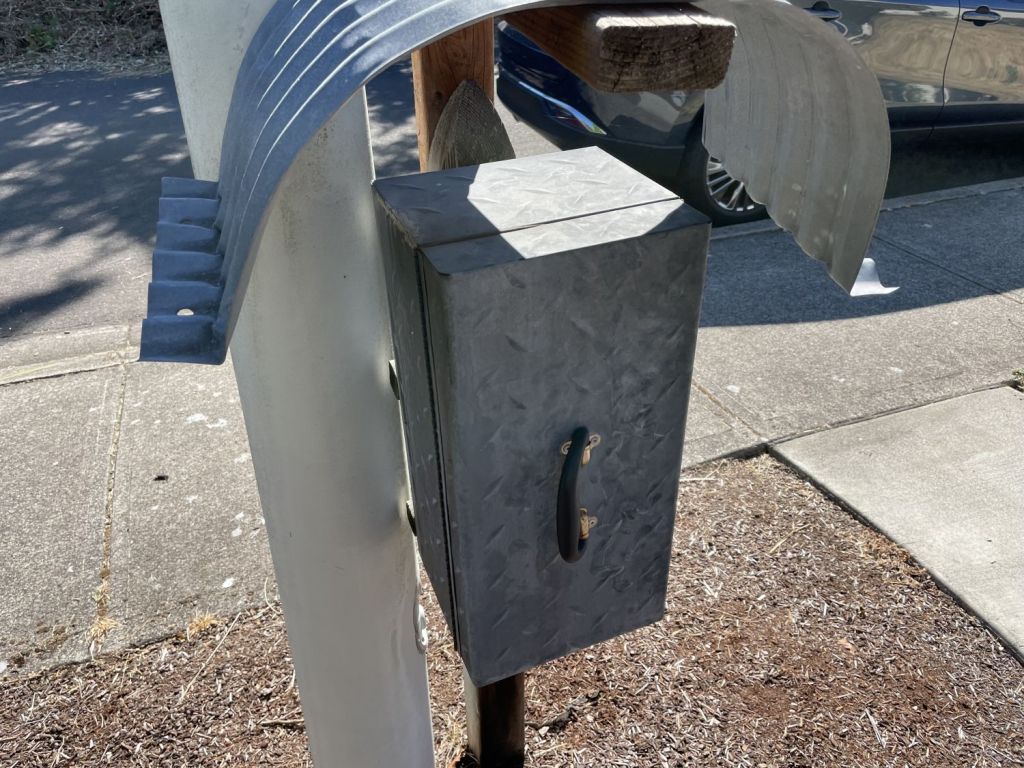 I decided to grab a second cache on the way out of town, a large travel bug hotel.  Why did it never occur to me to use a toolbox to make something like this?  And many thanks for leaving a light inside for passers-through in the night!  Heck, in appreciation for the work put into it, I gave it another of my stingily hoarded favorites.  Two in one county?  Who would have thunk it?  With that done, I set off again, passing back over the Columbia River for a third time, to claim one of the jewels of the trip…
