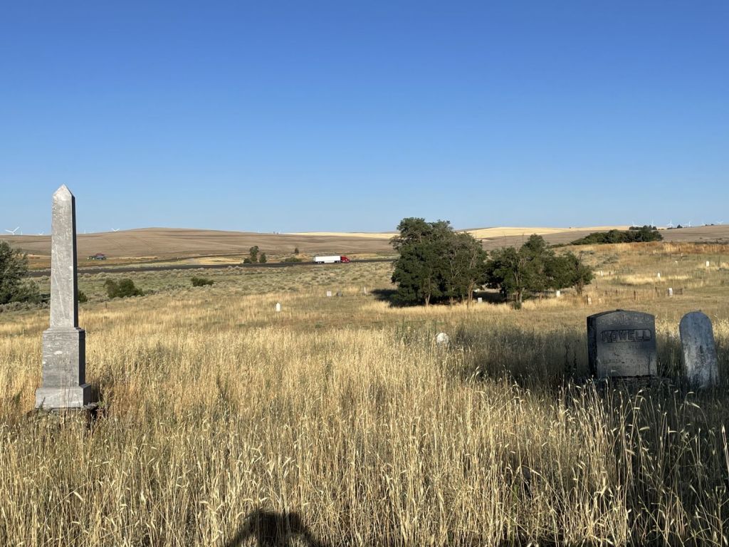 The search for a cache took longer than expected, though. With few caches, much less highly favorited ones, there were no obvious candidates. The first attempt was a simple Multicache that wound up with a DNF and began my hatred of sagebrush. The second attempt bore fruit (as agricultural regions also do). There’s always a cemetery. In this case, the disused side of an old cemetery, which was odd because there was a newer cemetery across the road. In the back of the old cemetery was a small grove of trees and one is supposed to look up to find the cache. In this case, it was on the ground and required no searching. It was signed and returned from whence it was found before I set off again. Bidding adieu to Oregon, I crossed over the Columbia River again, returning to Washington and the theoretical allures of…