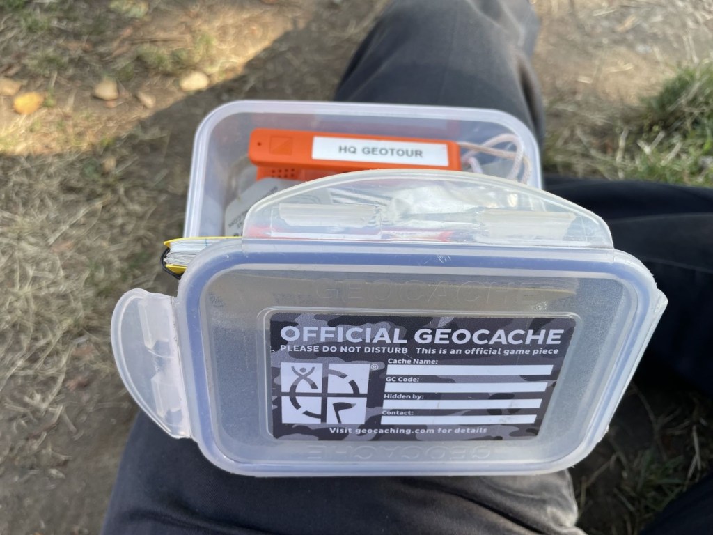 I kid thee not when I use the word “breathtaking.” Of course, it was a nano under a park table and bench, and there were muggles having a cookout there! Under any other circumstances, we probably would have let it go, but not this time… Buck went right up to them and told them what we were doing and why we needed to search their table! SoaringEagle and I chatted with them while he looked. He found it, and we all signed it. Sure, it was stolen valor because he did all the work, and I just stood around and looked pretty. But, as I have often said, victory requires no explanation!