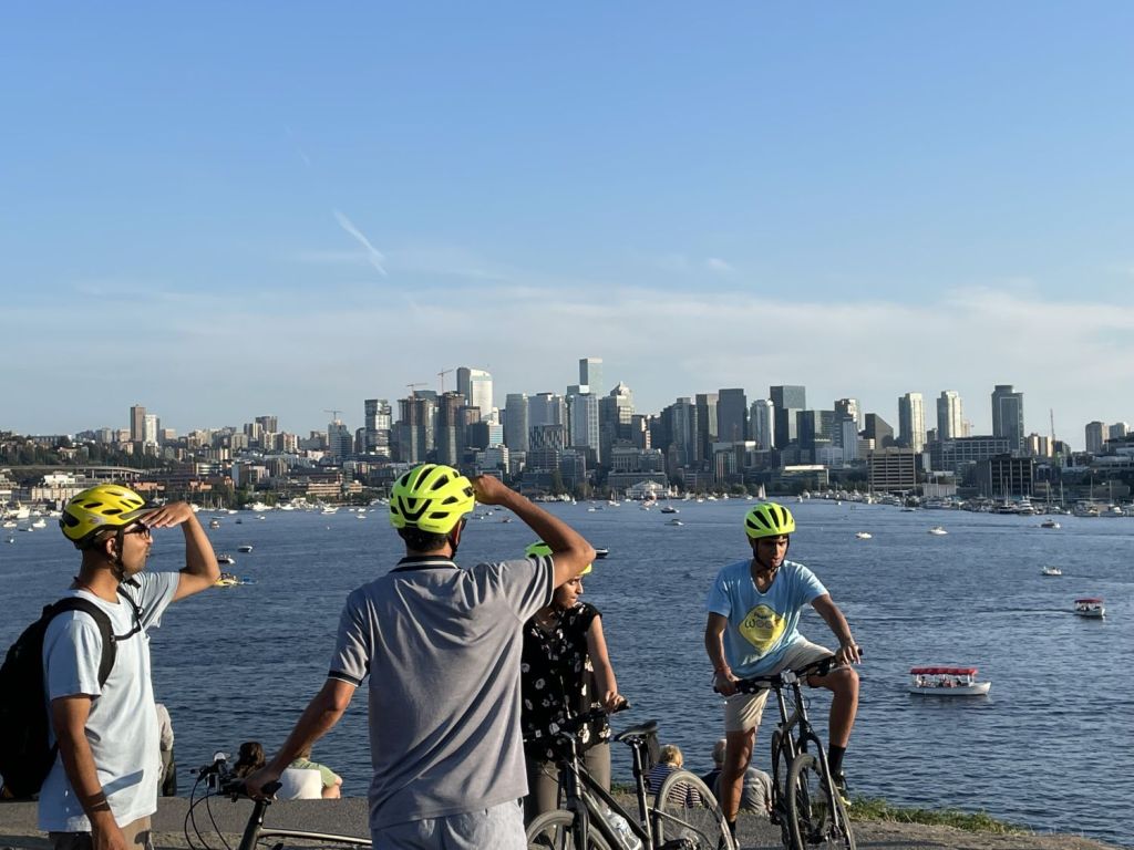 Well, imagine my surprise to see this in the windows of an office building across the street! I guess someone thought this might be better than thousands of cachers coming up to the top for it! Of course, I’m not giving this one away. You should have been there! I took notes, corrected coordinates, and ended up snagging it as we traveled about over the afternoon (though I forgot to photograph it because there were just so many to grab!). We continued on to another Unknown that Buckandi had solved before we arrived in the Pacific Northwest. Considering what he had to do to solve it, there was no way it was going to be left alone. It probably required writing a program to solve since it stated that you needed to be a hacker, but he and his lovely wife managed to do it with the help of a bogglingly complex Excel spreadsheet. We made it to a park with the most amazing view of the city.